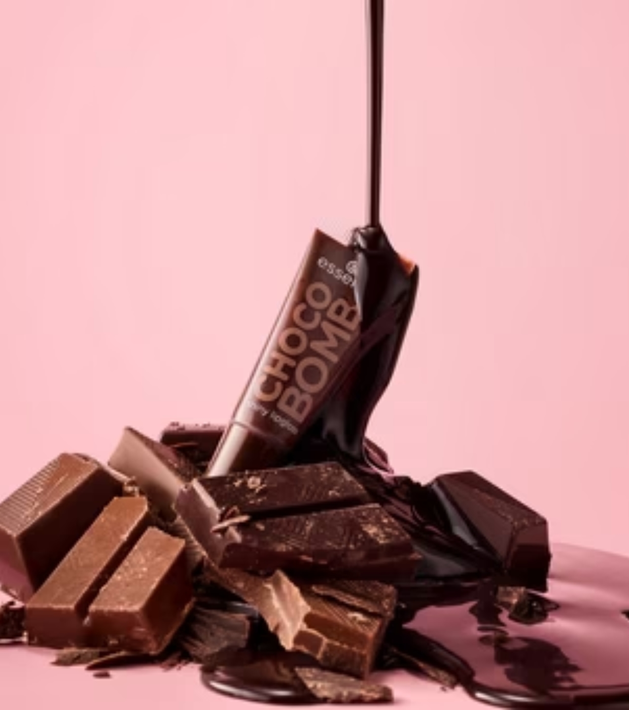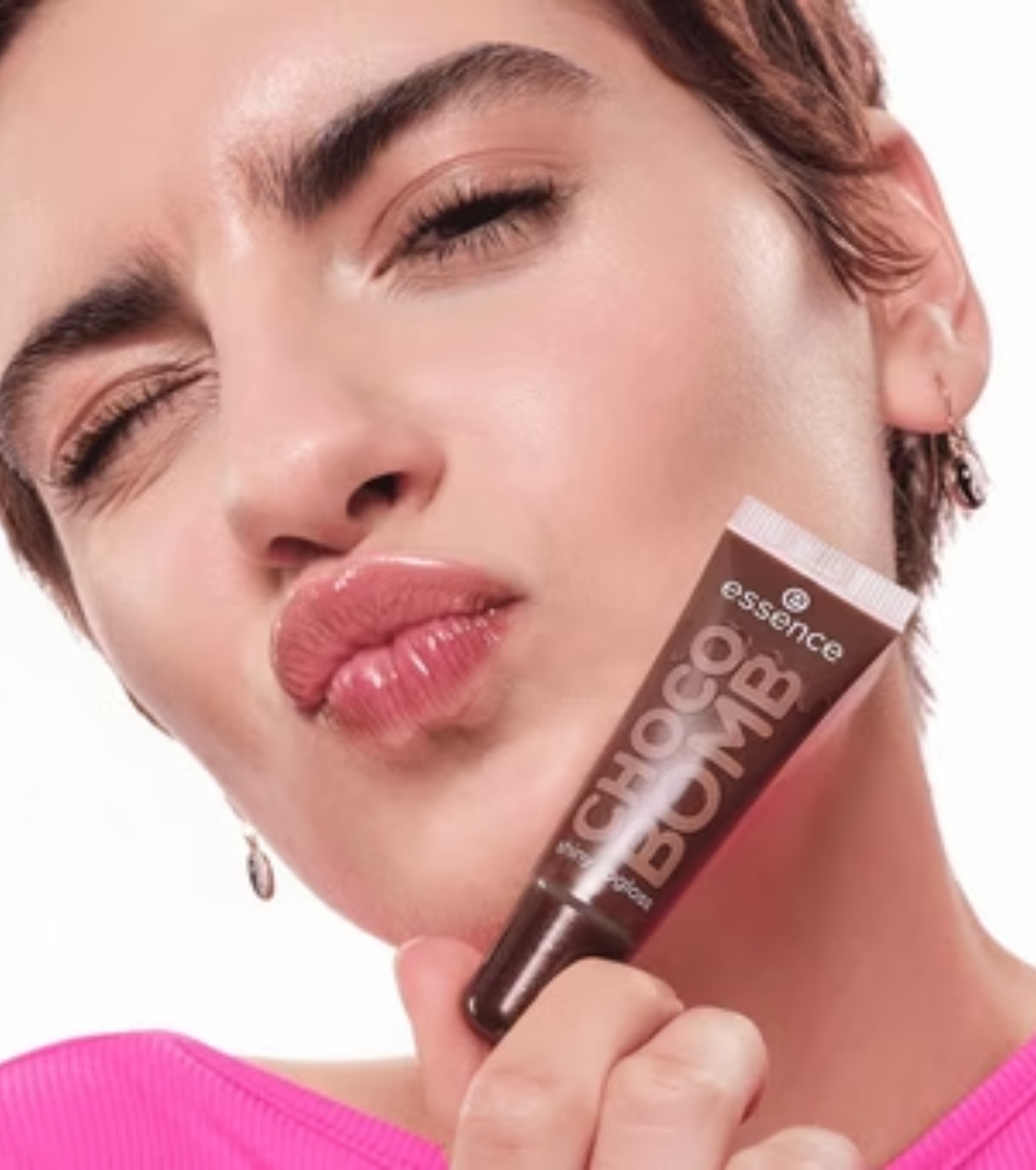 O gloss labial essence essence é um gloss marrom com brilhos dourados e um delicioso aroma de chocolate.