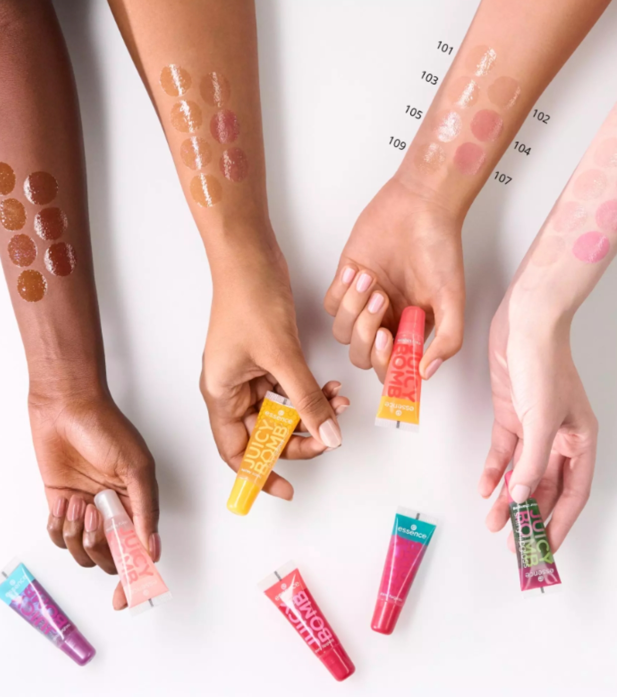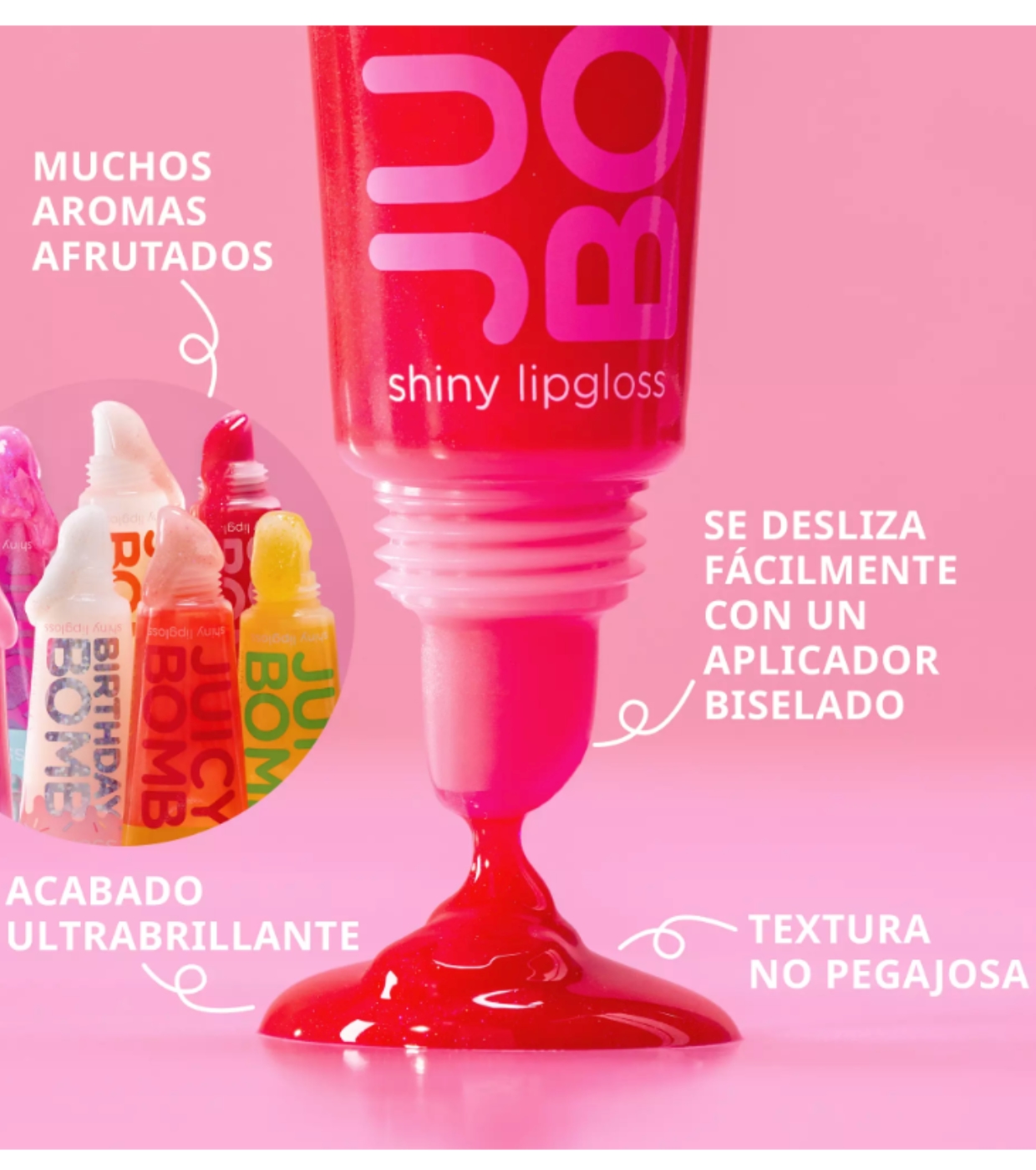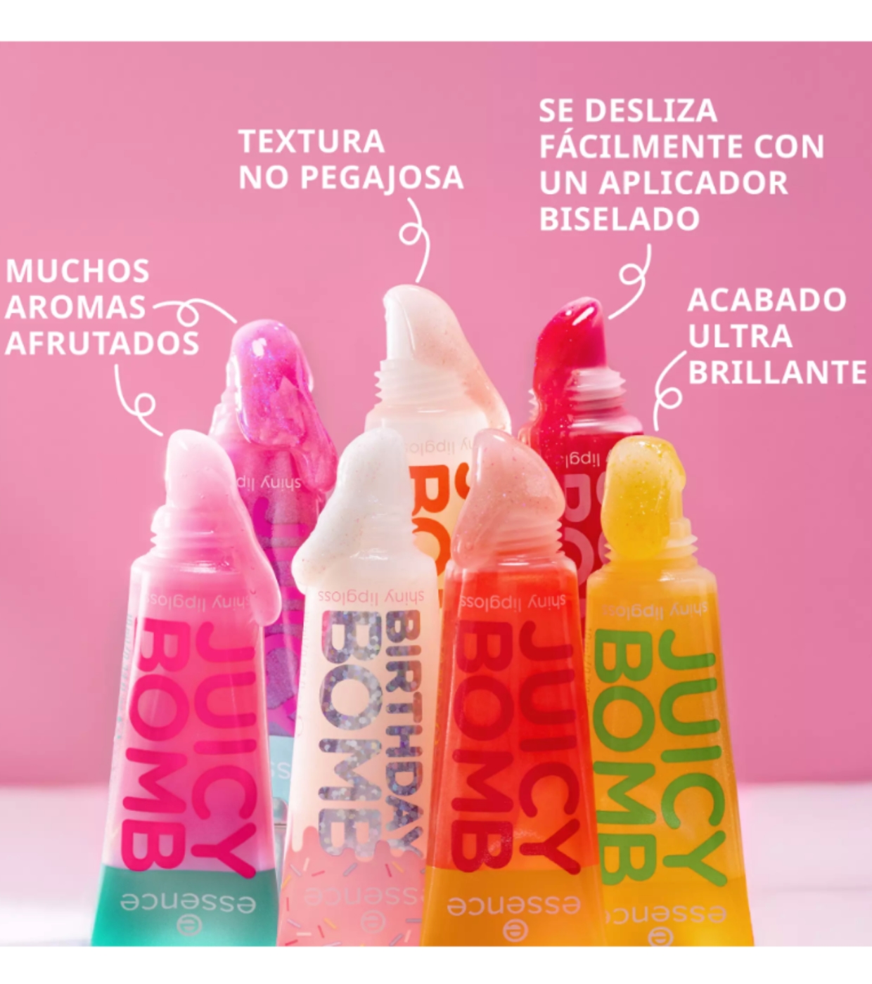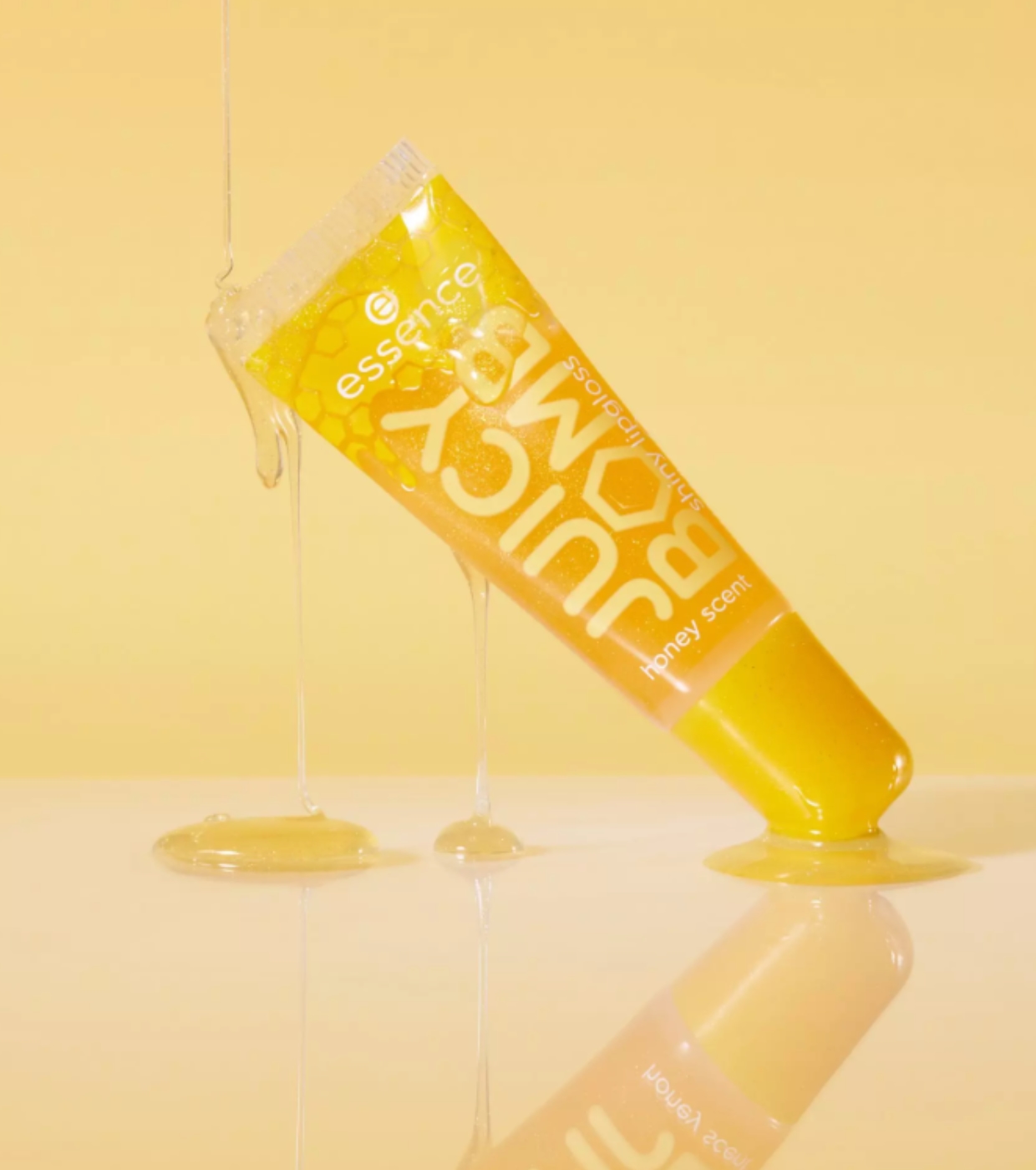 Brilhe com um brilho intenso e quente graças ao gloss labial JUICY BOMB da essence .
