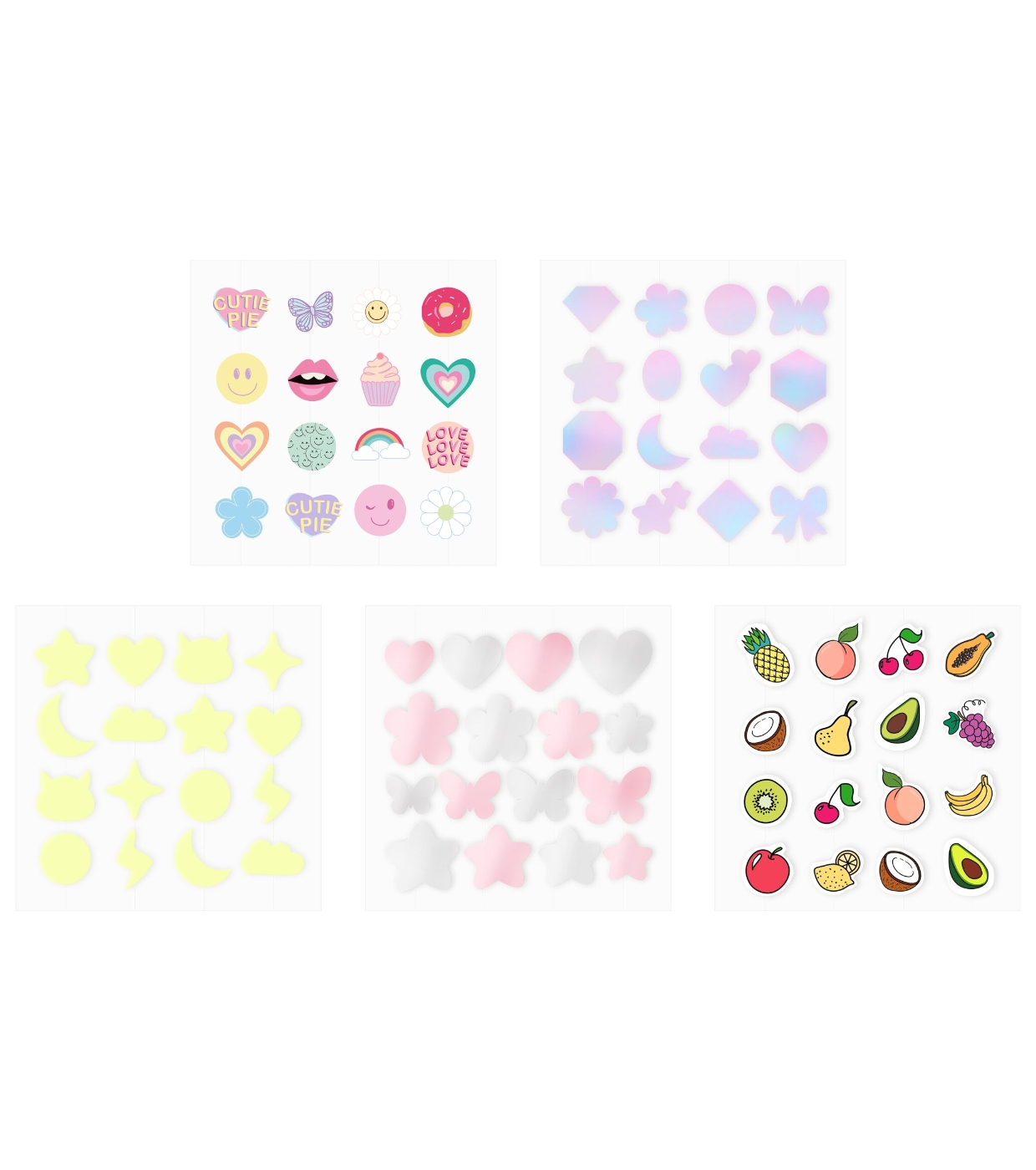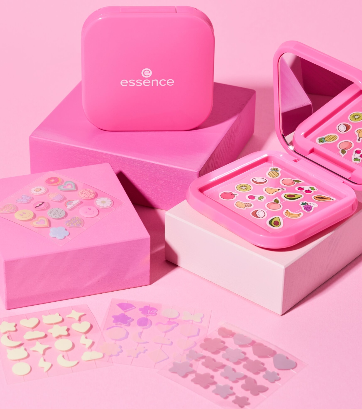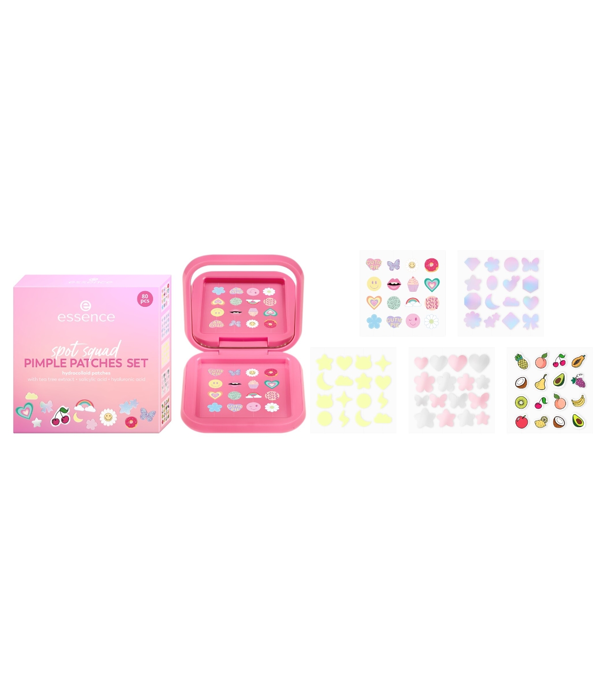 O conjunto de adesivos para acne essence oferece adesivos originais com formatos e efeitos divertidos, como metálicos, holográficos ou que brilham no escuro.