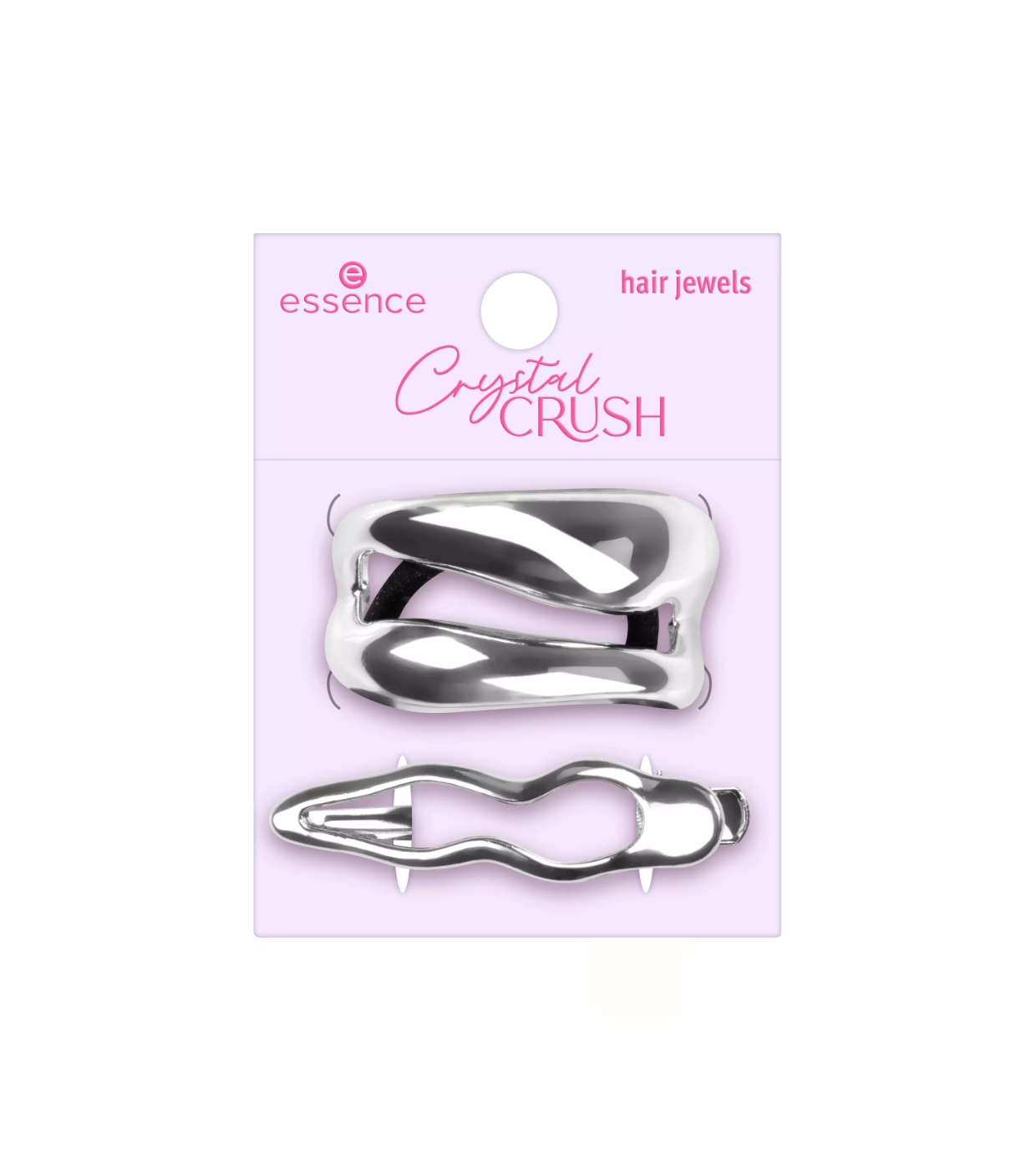 O conjunto CRYSTAL CRUSH de scrunchie e presilha de cabelo da essence é o acessório perfeito para dar um toque metálico moderno e chamativo a qualquer penteado.