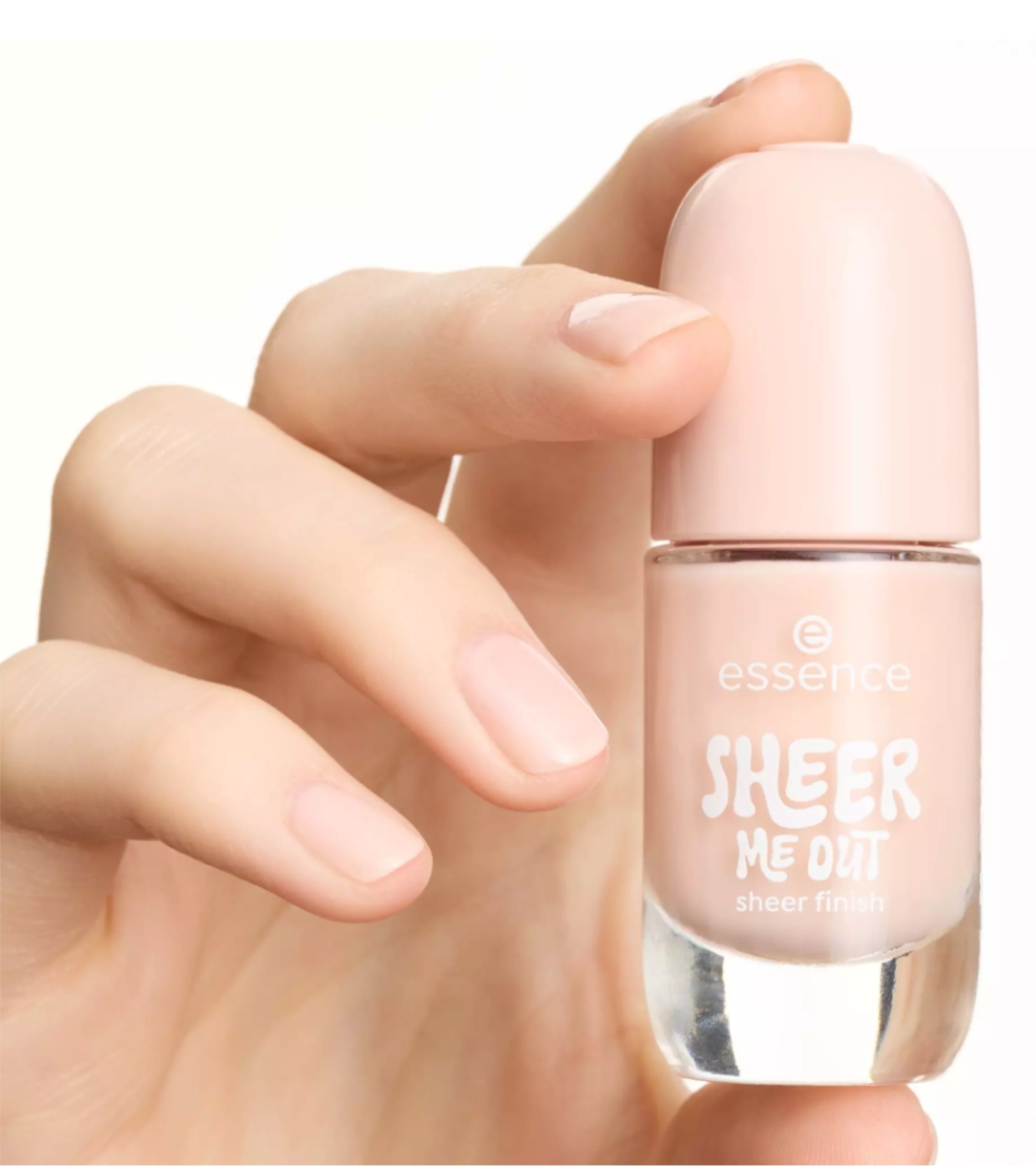 O esmalte em gel Sheer Me Out da Essence , em um tom pêssego suave e translúcido, é perfeito para conseguir uma manicure natural com um acabamento luminoso e sofisticado.