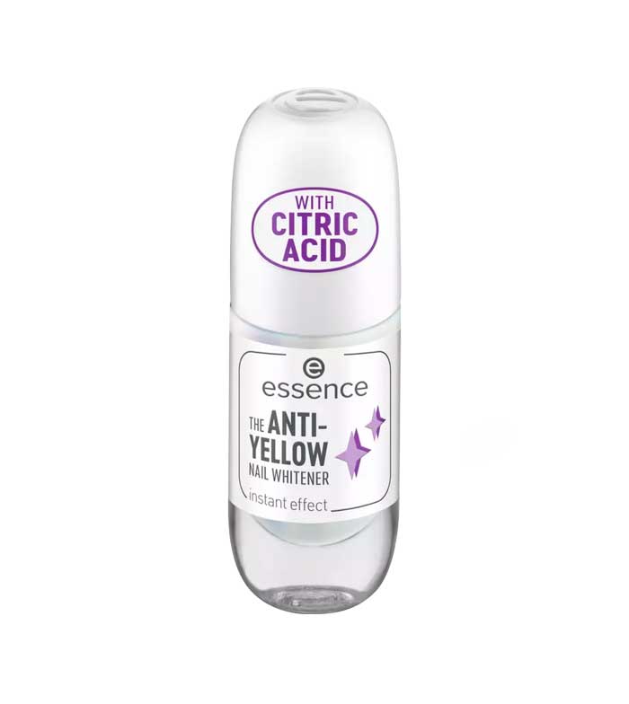 A sua textura leitosa de verniz contém ácido cítrico e pigmentos azuis, para um efeito branqueador anti-amarelecimento.