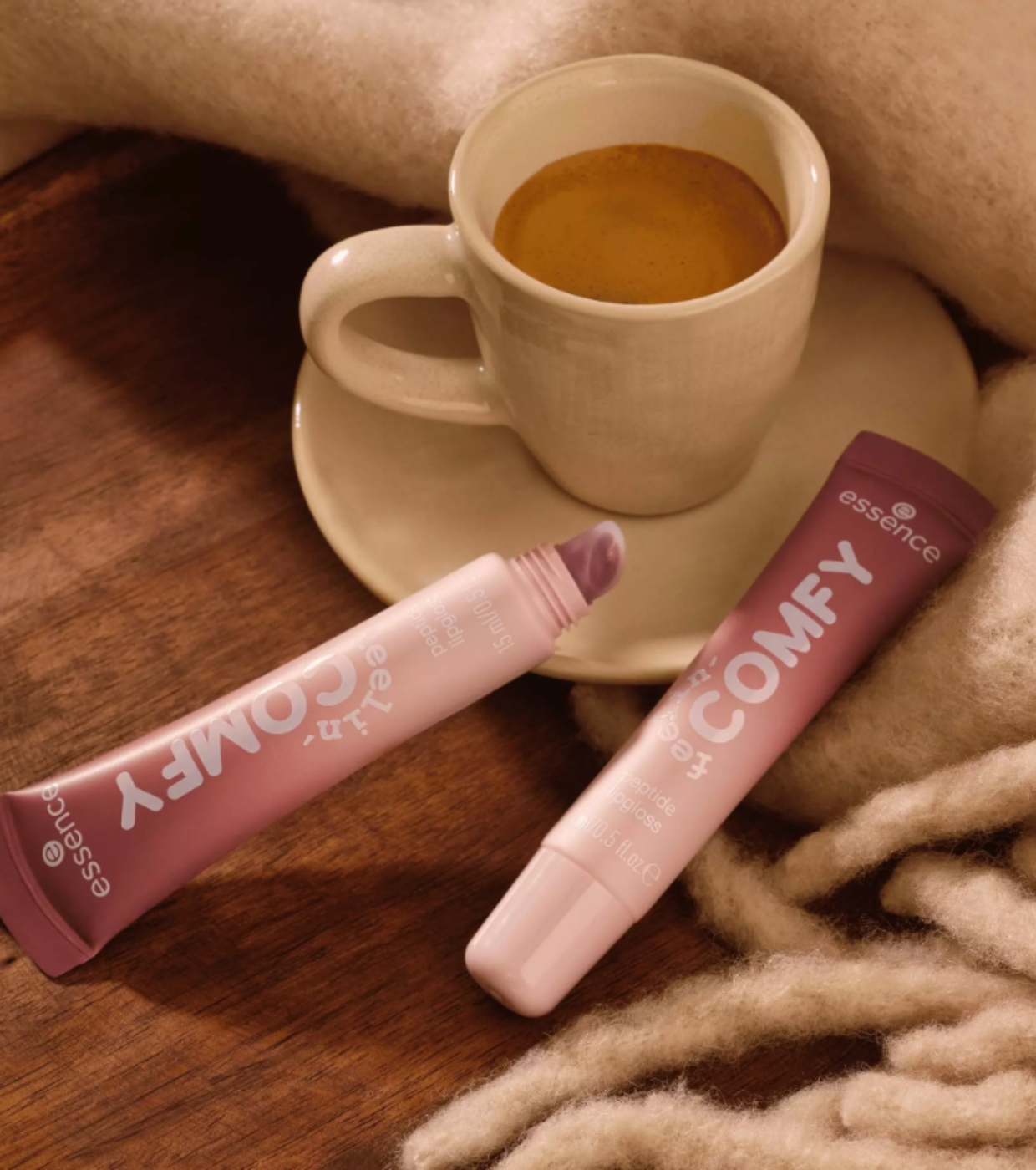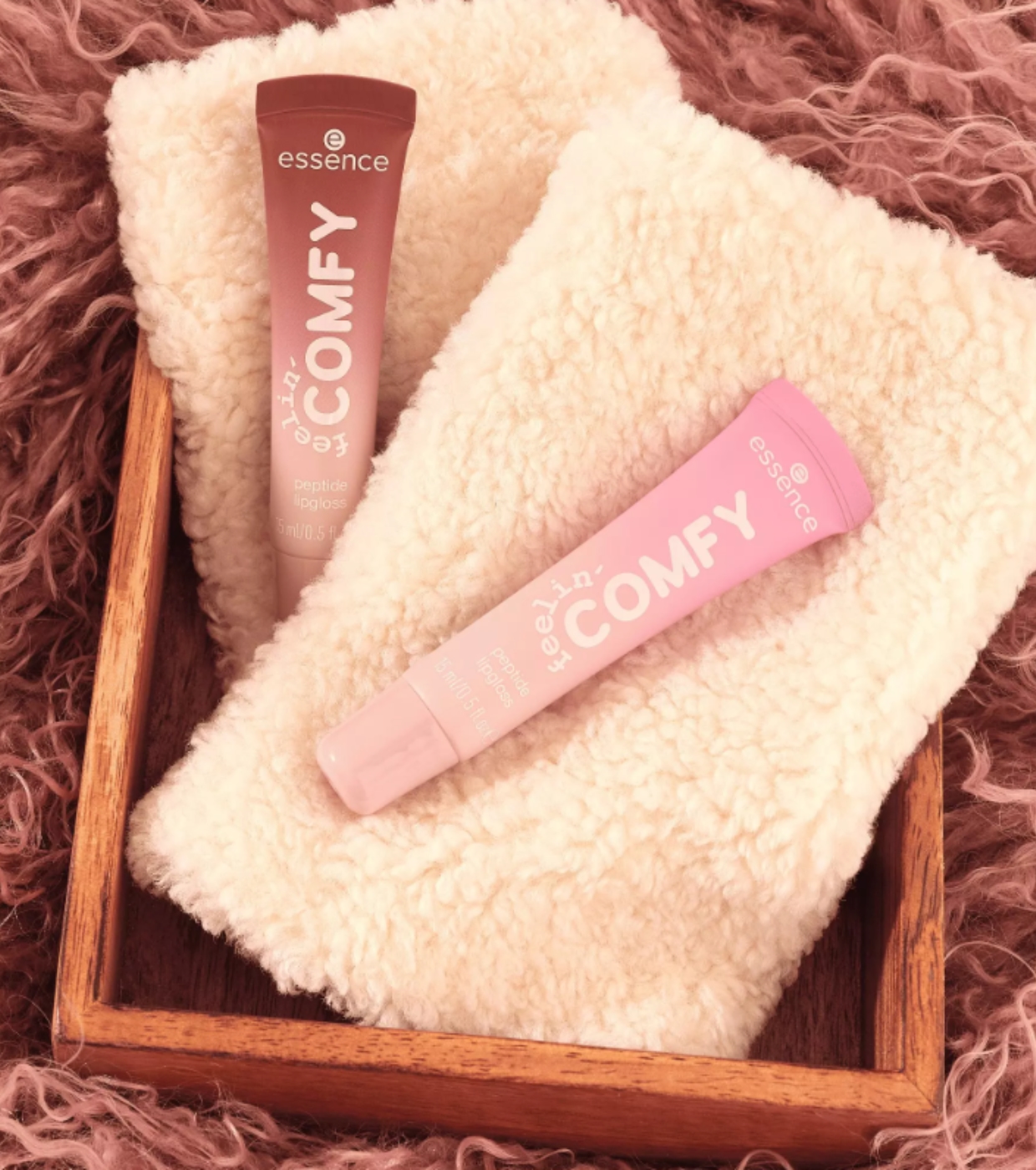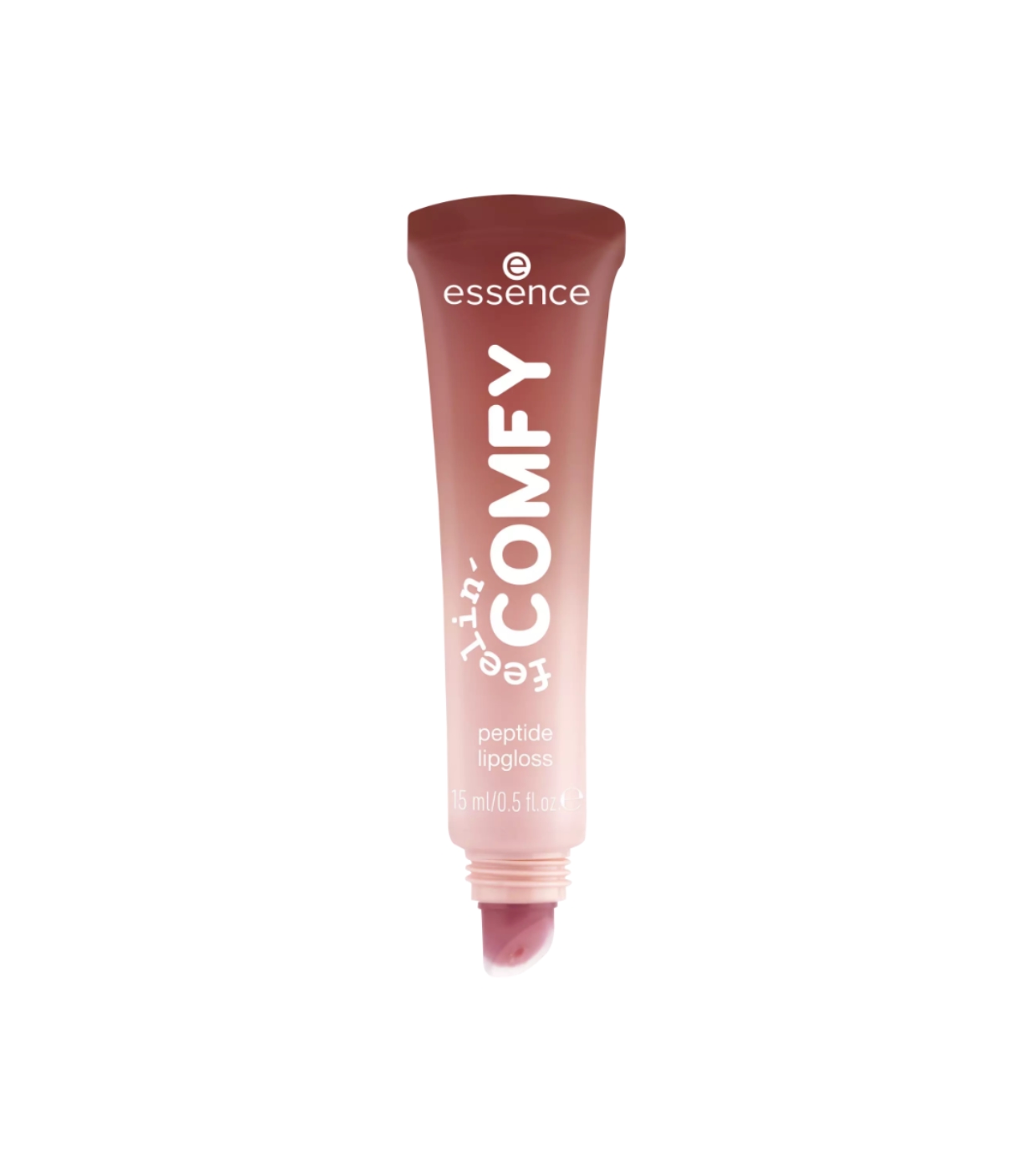 O gloss labial Feelin’ Comfy Peptide Lipgloss da essence proporciona aos lábios um tom rosa claro luminoso com um acabamento natural e favorecedor.