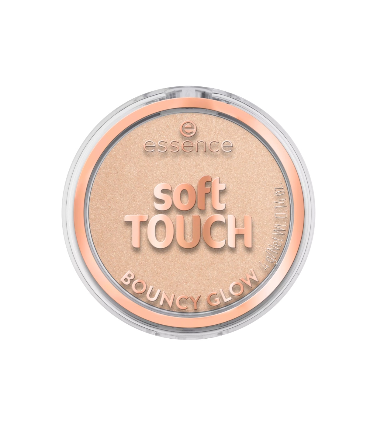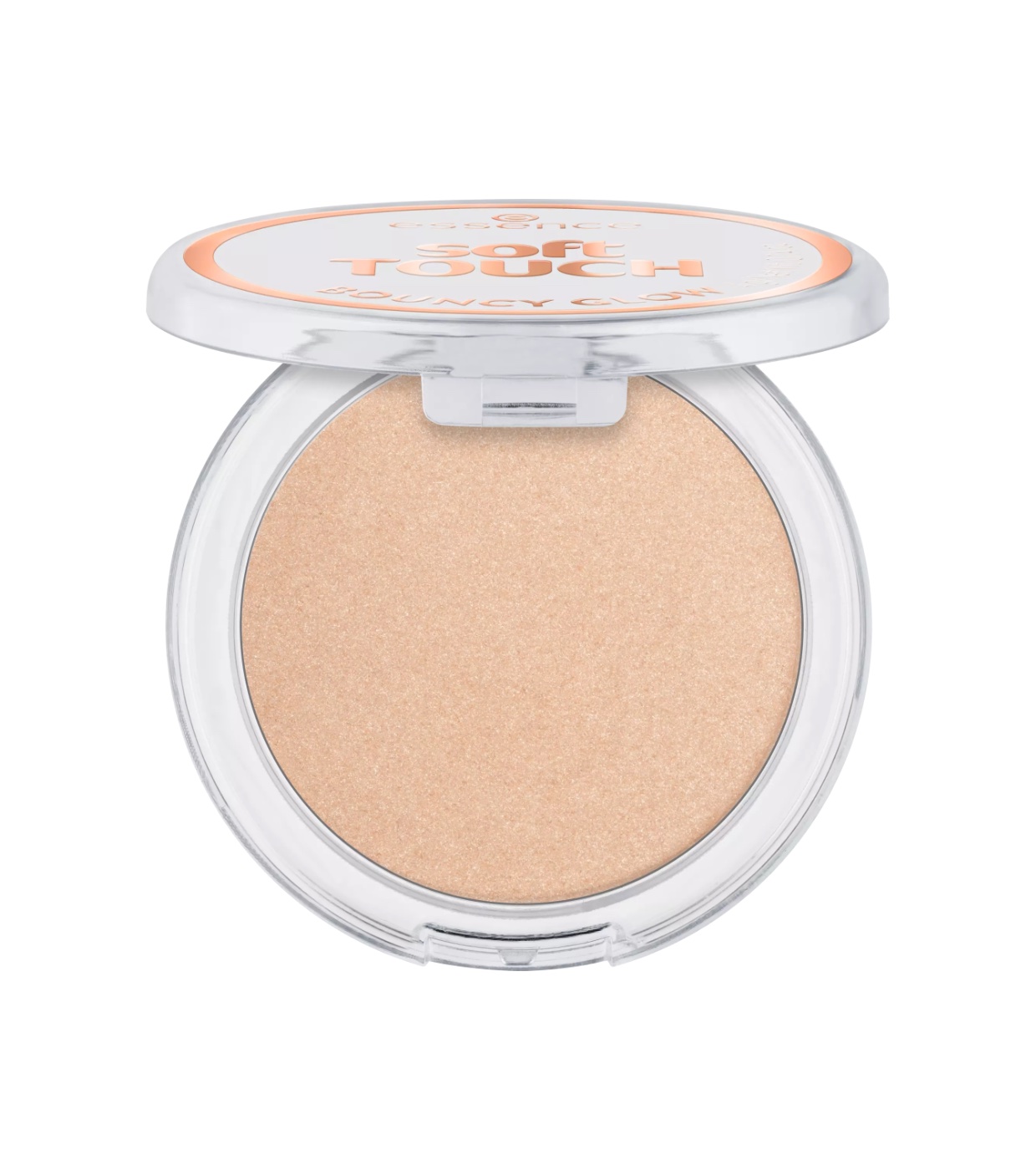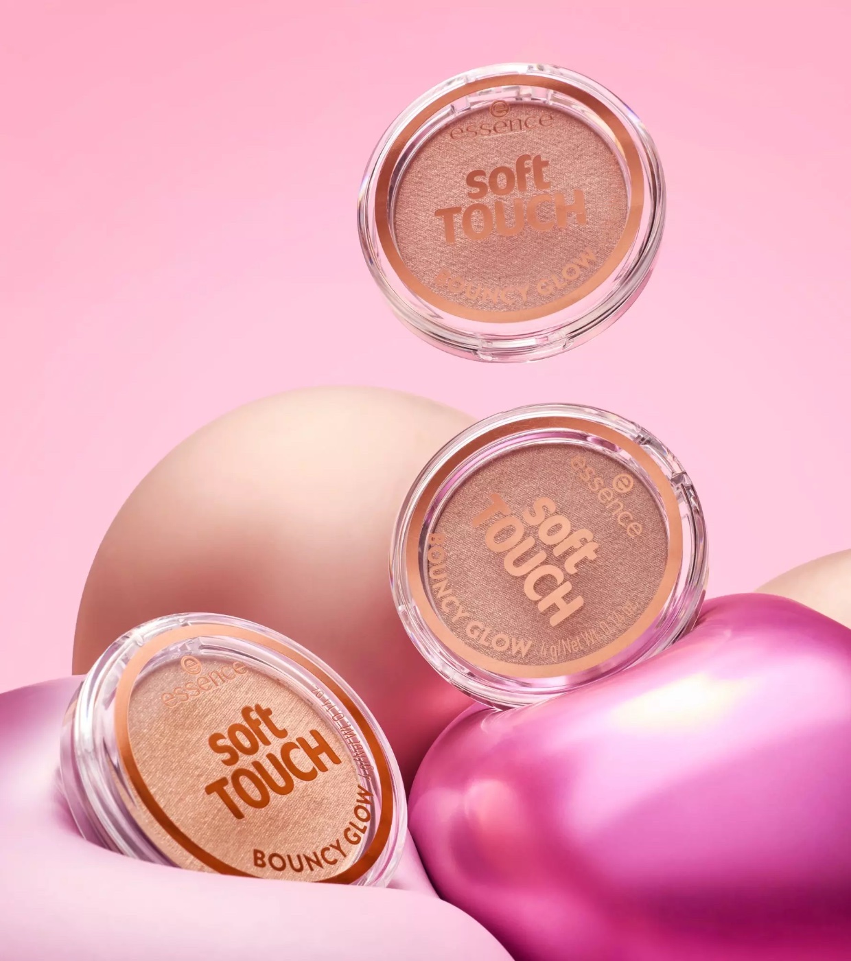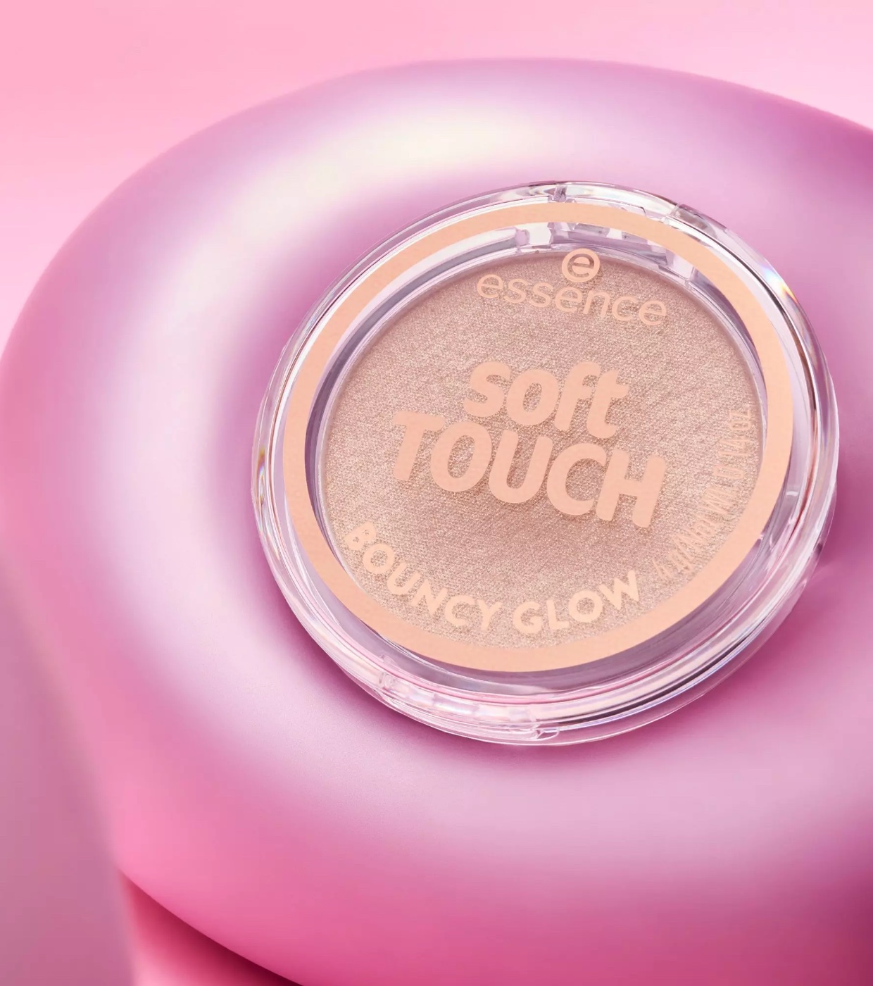 Essence Soft Touch Bouncy Glow é um iluminador inovador com uma textura flexível e sensorial que se transforma em um acabamento sedoso e em pó após a aplicação.