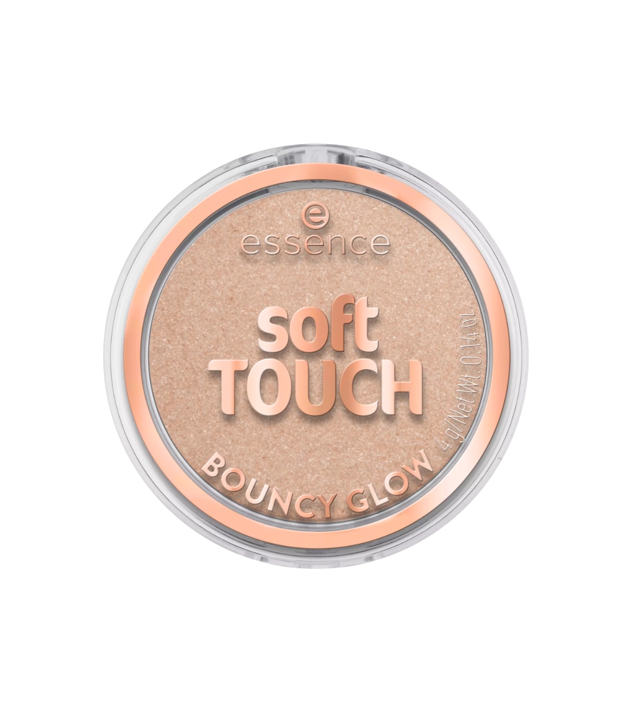 Essence Soft Touch Bouncy Glow é um iluminador inovador com uma textura flexível e sensorial que se transforma em um acabamento sedoso e em pó após a aplicação.