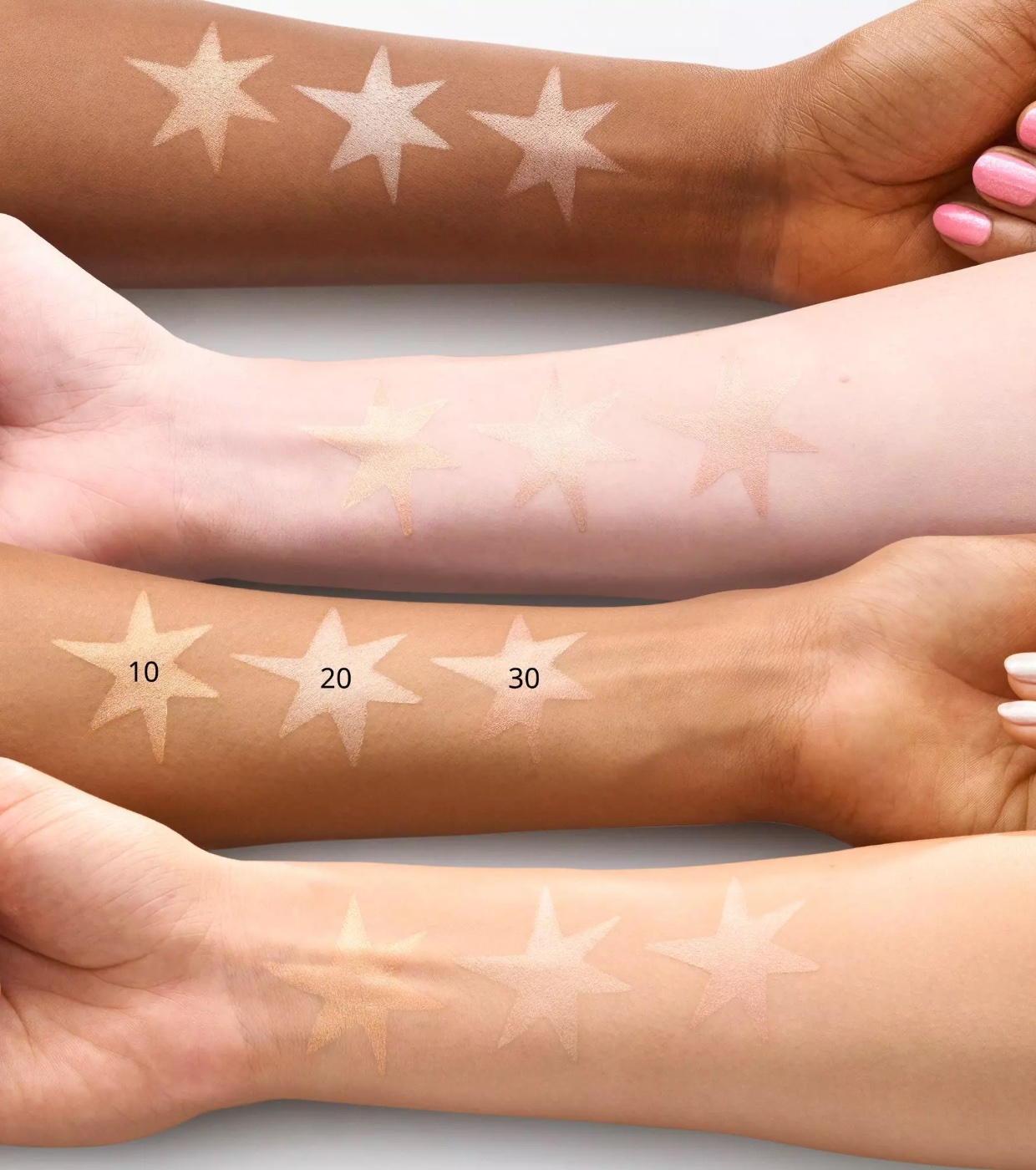 Sua fórmula leve espalha-se facilmente, criando um efeito glow modulável, desde um brilho sutil até uma luminosidade mais intensa.