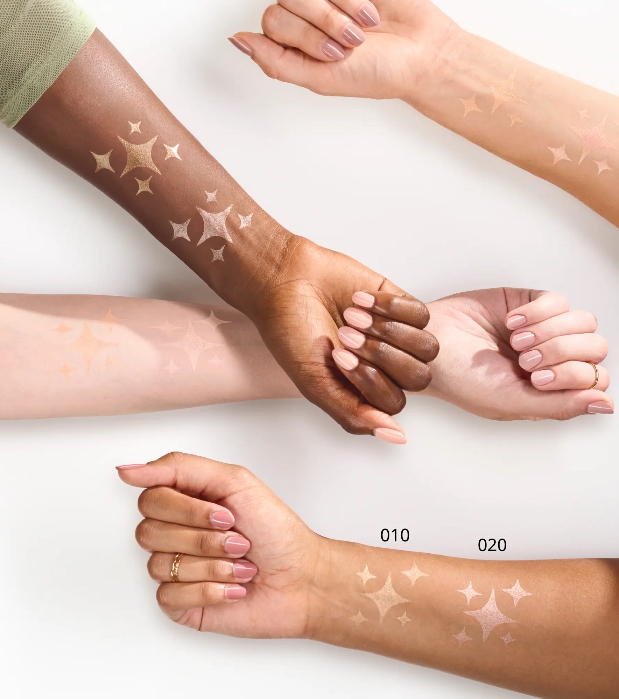 Usado sozinho ou sobre a maquiagem, ele cria um brilho translúcido e cintilante que favorece todos os tons de pele.
