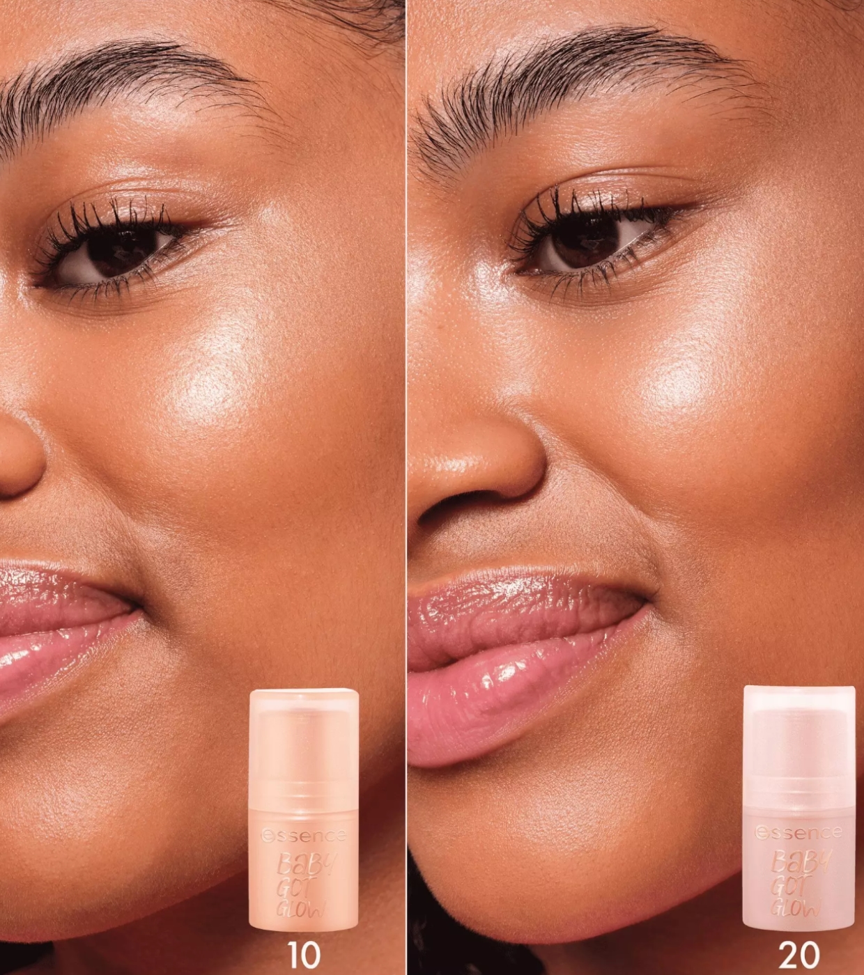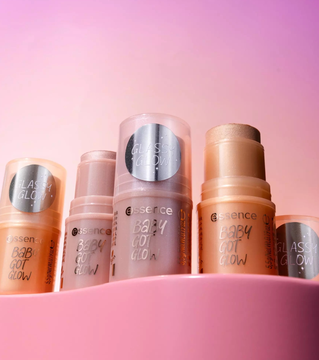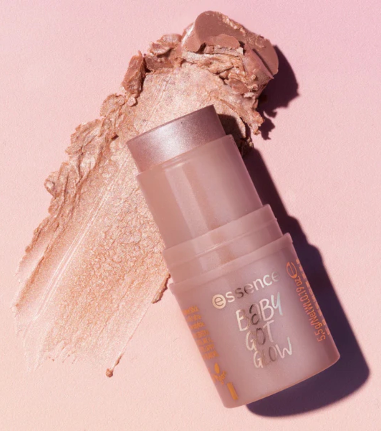Adicione um toque doce e radiante ao seu visual com o iluminador em bastão Baby Got Glow da Essence .