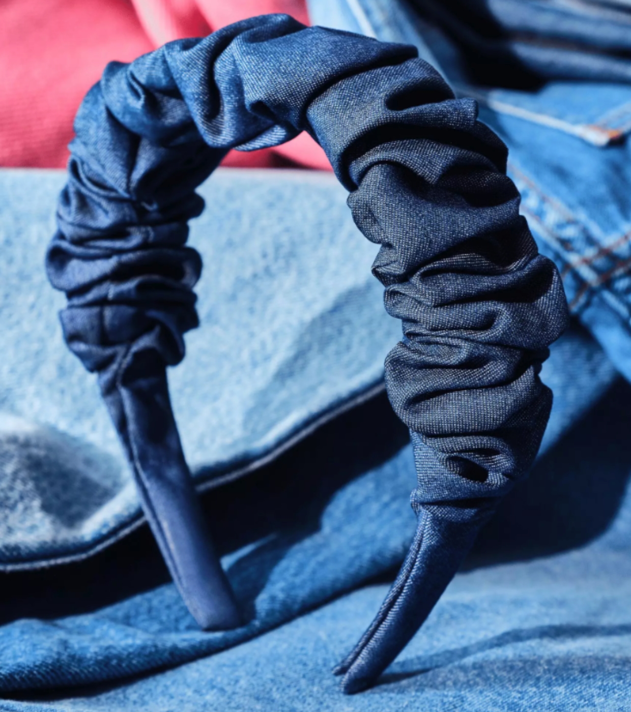 Com acabamento em denim azul escuro, esta faixa de cabelo confere um visual moderno e casual que combina facilmente com tudo.