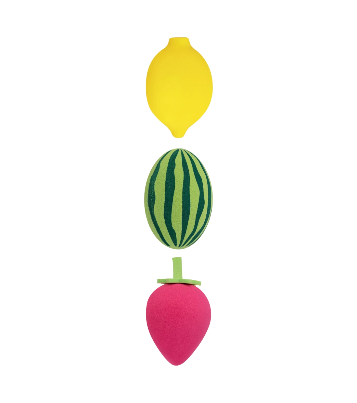 Essas esponjas irresistíveis em formatos frutados de melancia, morango e limão não só alegram sua penteadeira, mas também são ferramentas versáteis para obter um acabamento impecável.