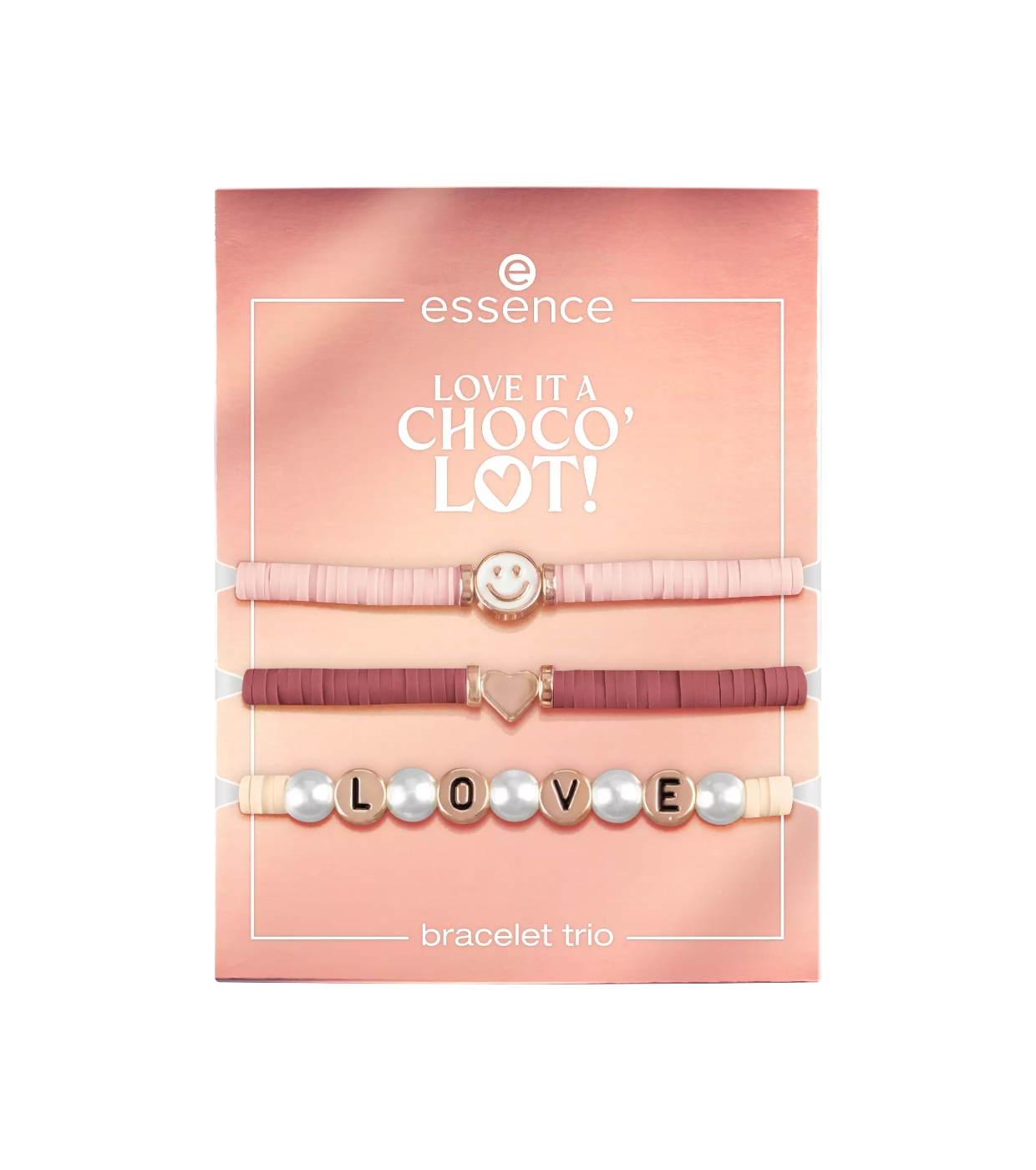 O trio de pulseiras da coleção Love It A Choco'lot da essence é a forma perfeita de complementar qualquer look com um toque divertido e elegante.