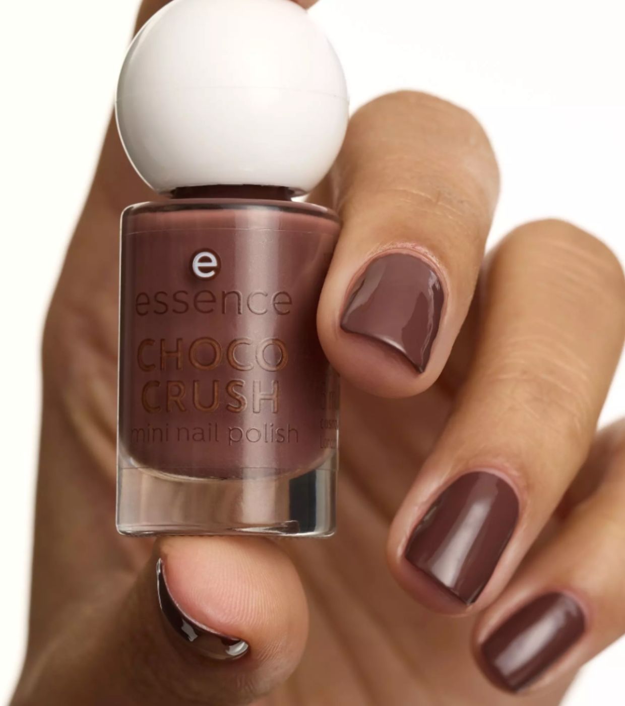 O mini esmalte Choco Crush 17 da essence , um tom marrom chocolate intenso que transforma suas unhas em uma verdadeira tentação de beleza.