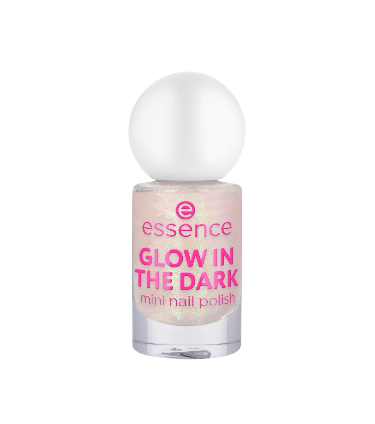 O esmalte em miniatura The essence Glow In The Dark 14 é um rosa claro com brilhos dourados iridescentes que proporciona um efeito mágico e luminoso.
