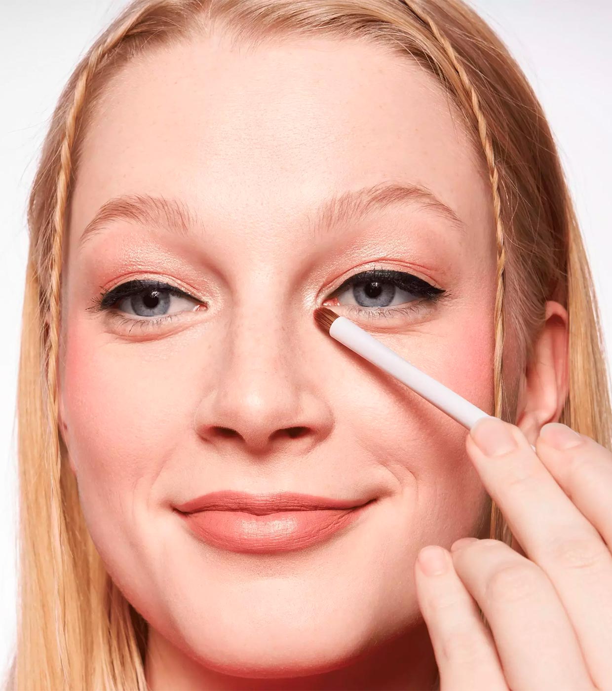 O pincel extrafino é perfeito para aplicar sombra e eyeliner nas linhas dos cílios superiores e inferiores e no canal lacrimal.