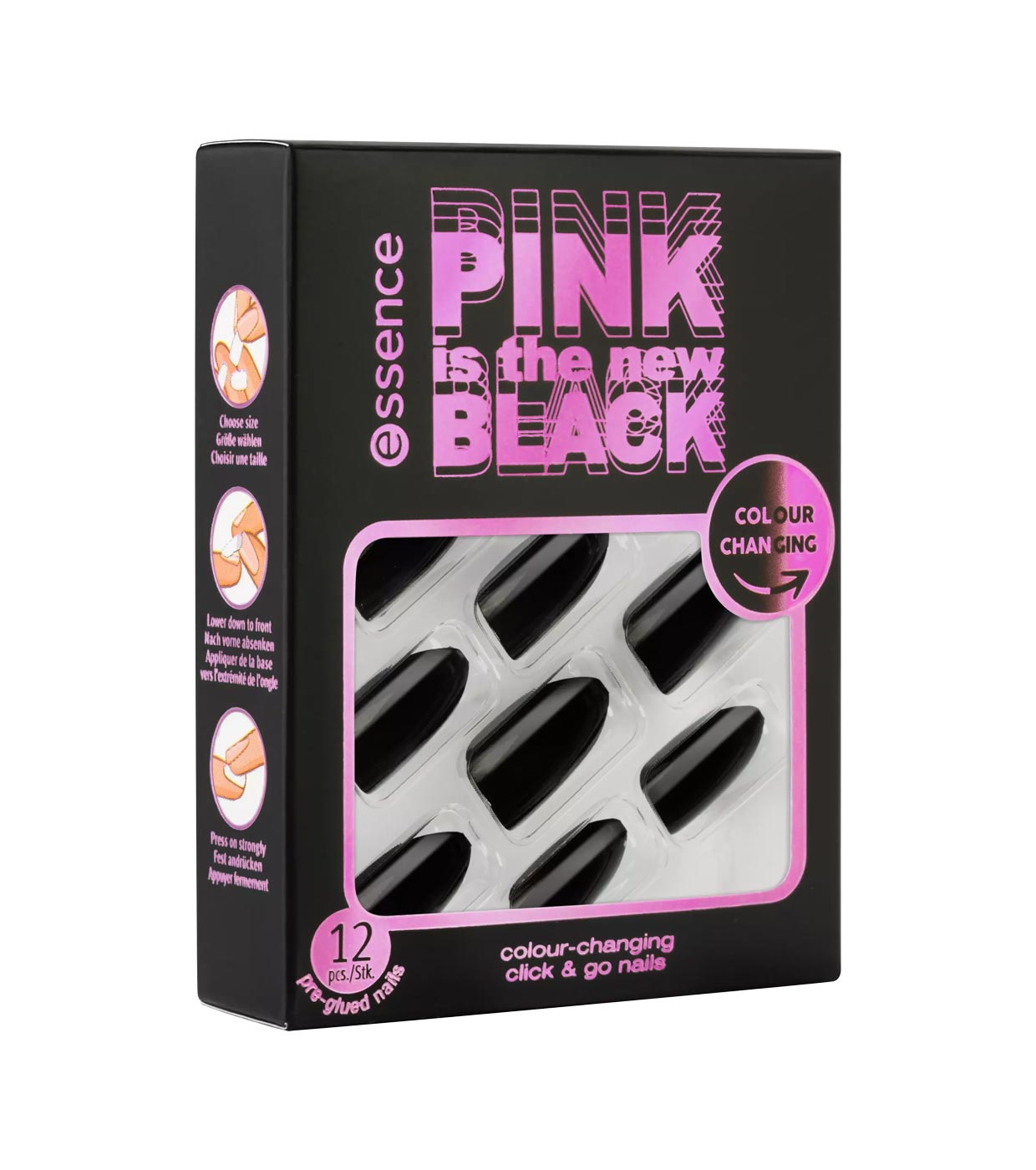 Unhas Click & Go que mudam de cor PINK is the new BLACK de essence.
