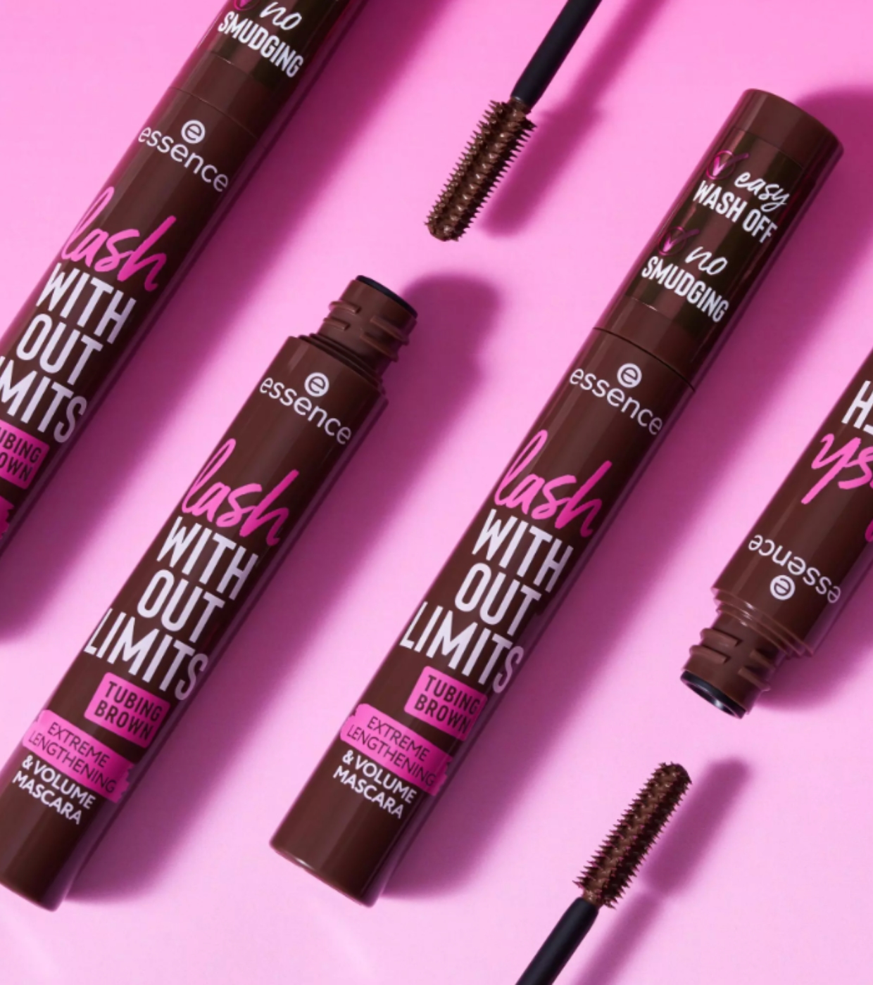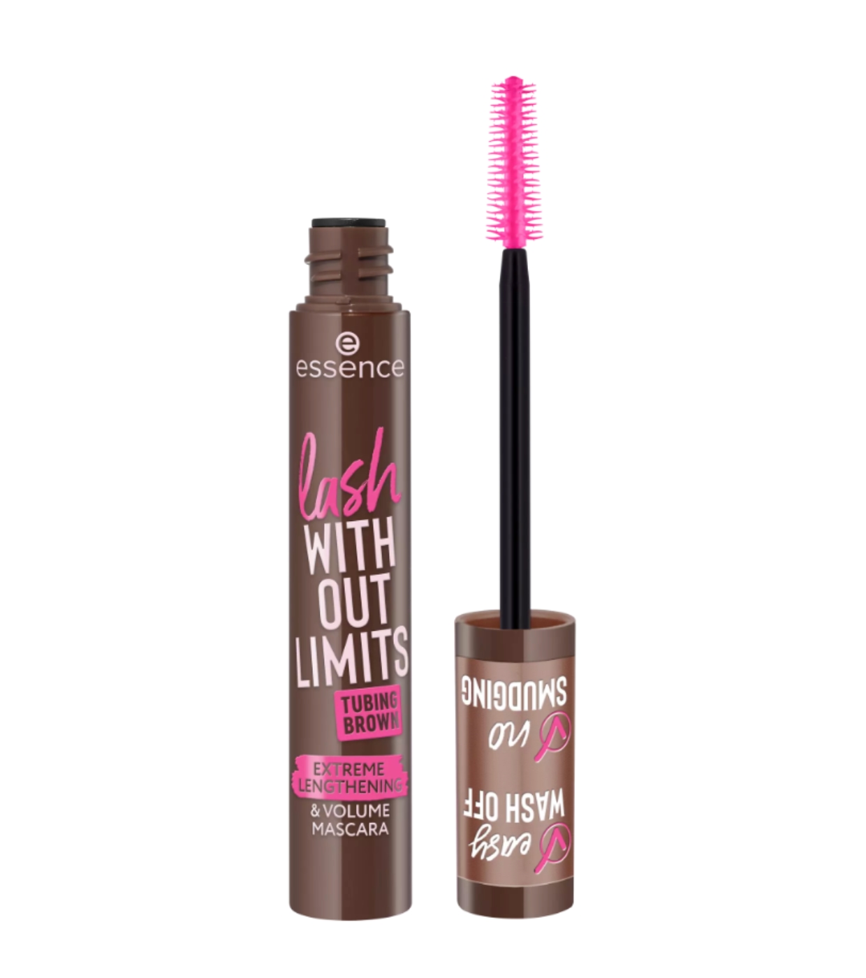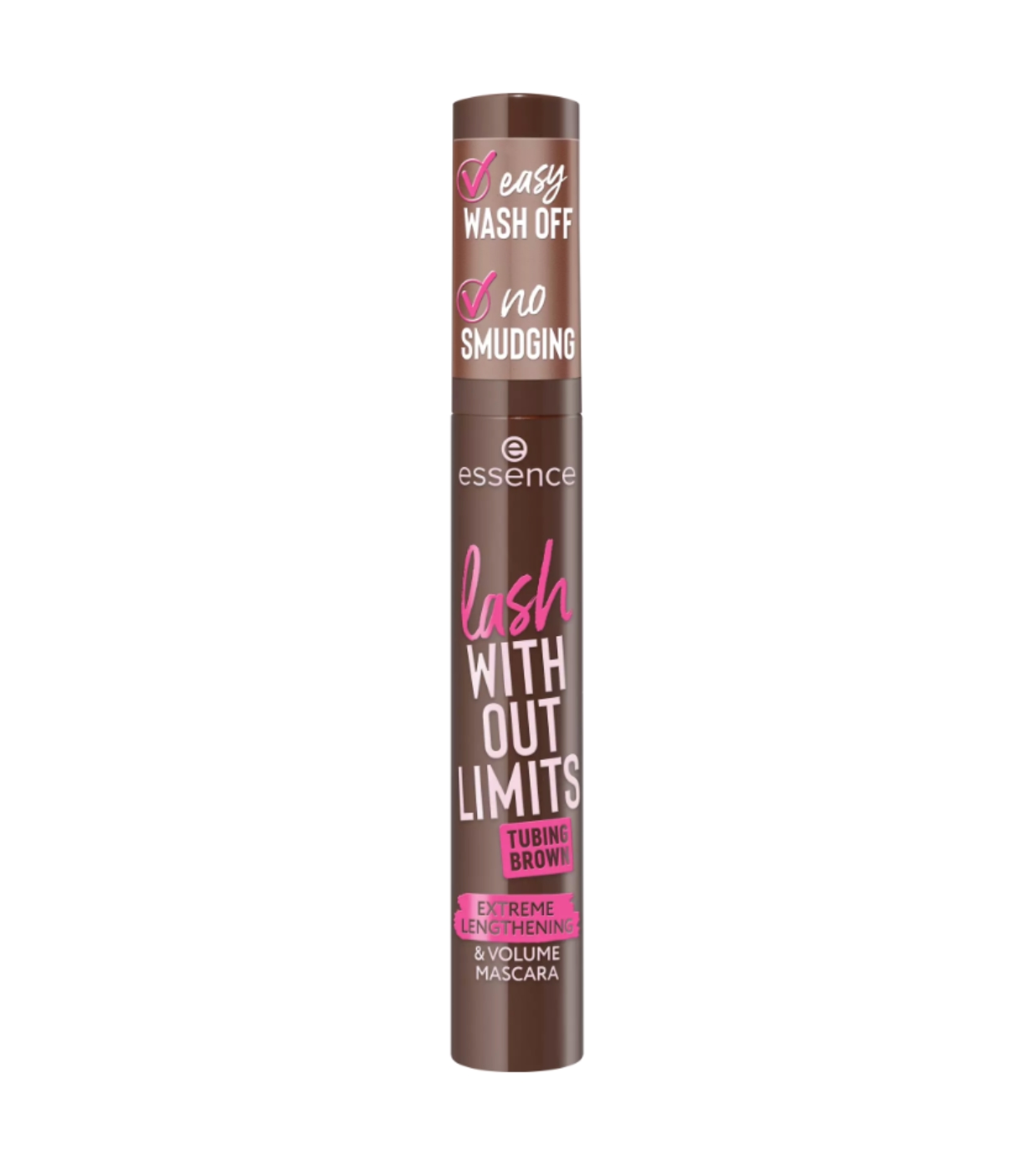 Consiga cílios definidos e espetacularmente longos com a máscara Without Limits Tubing Brown da essence .