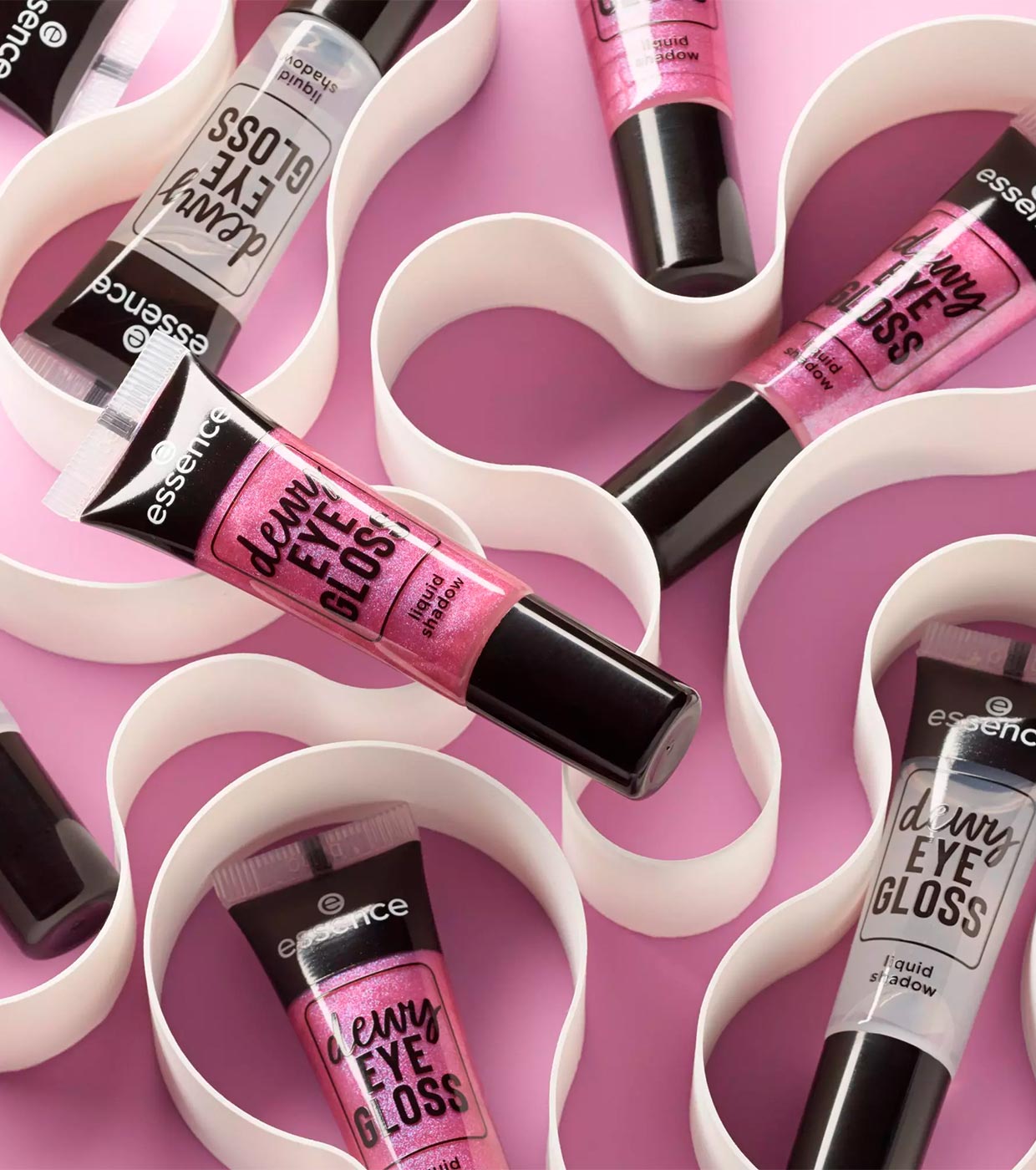 Deixe seus olhos brilharem com a sombra líquida Dewy Eye Gloss Crystal Clear da essência.