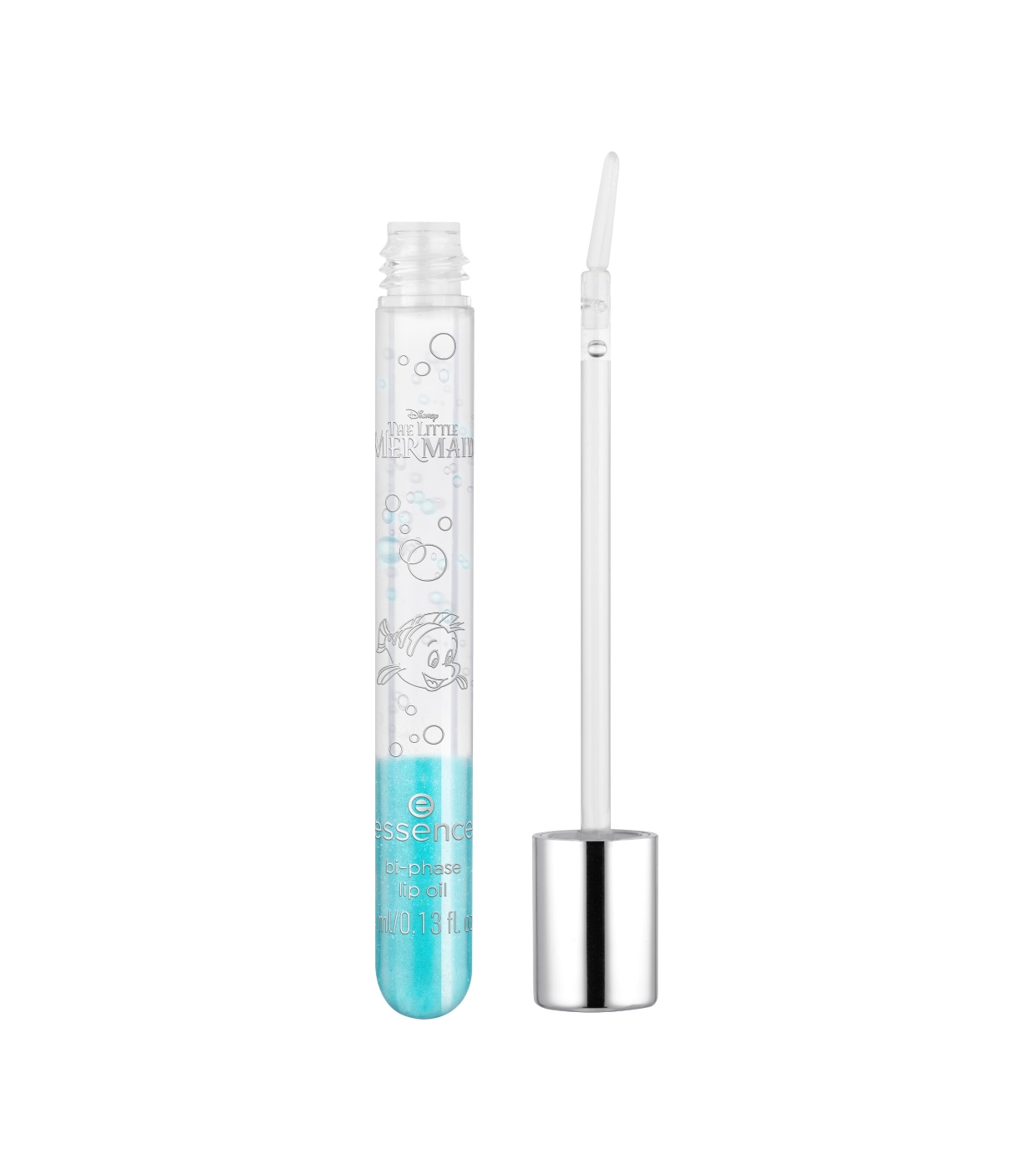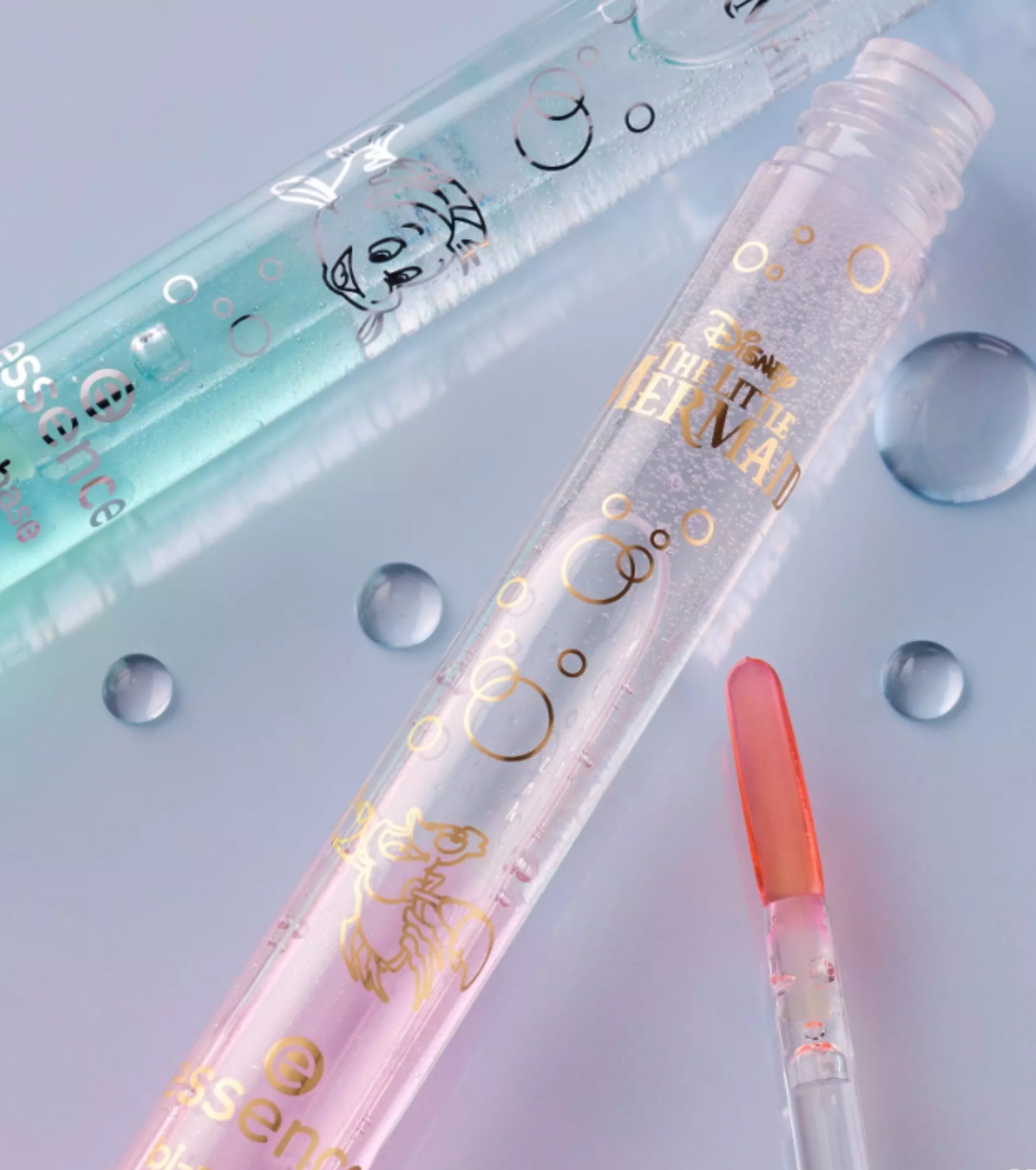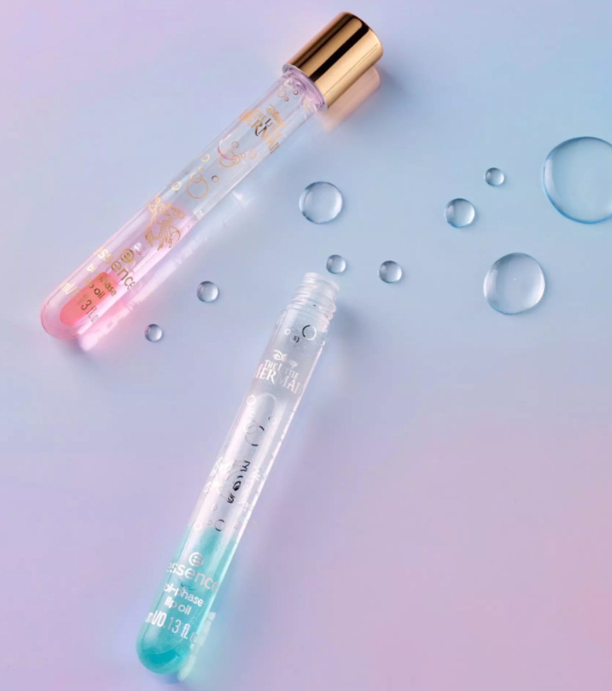 Dê aos seus lábios um toque mágico do oceano com o óleo labial bifásico da coleção A Pequena Sereia da essence x Disney .