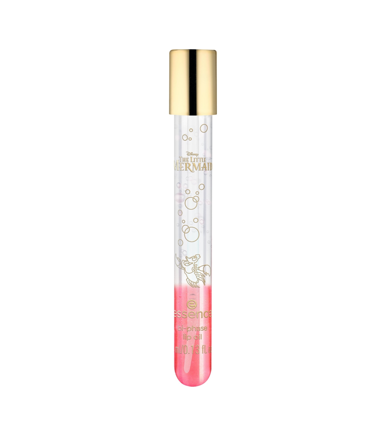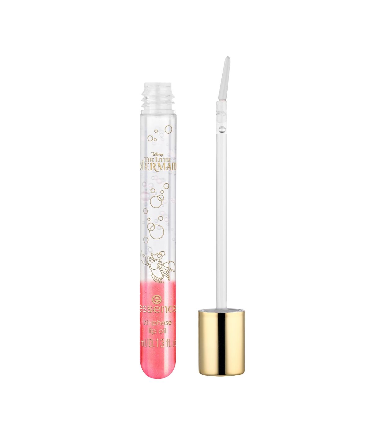Dê aos seus lábios um toque mágico do oceano com o óleo labial bifásico da coleção The Little Mermaid da essence x Disney .