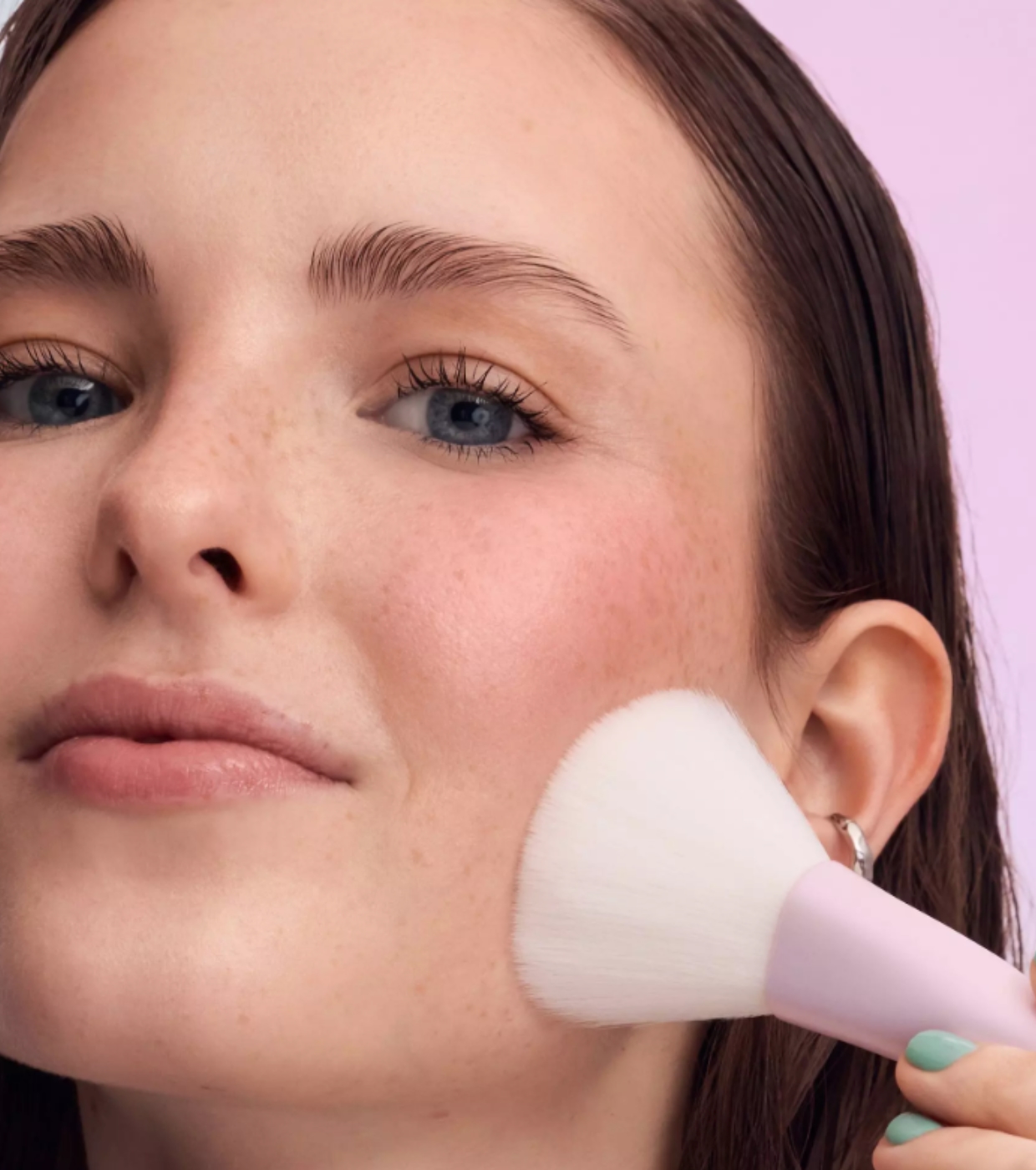 Suas cerdas largas e ultramacias permitem a aplicação uniforme de pó solto ou compacto, selando a maquiagem e proporcionando um acabamento leve e natural. Ideal para matificar o rosto sem pesar na pele.