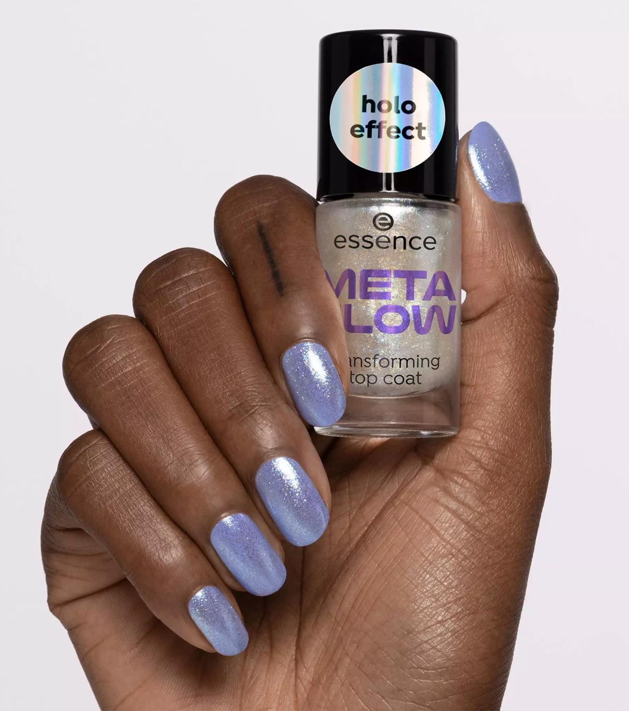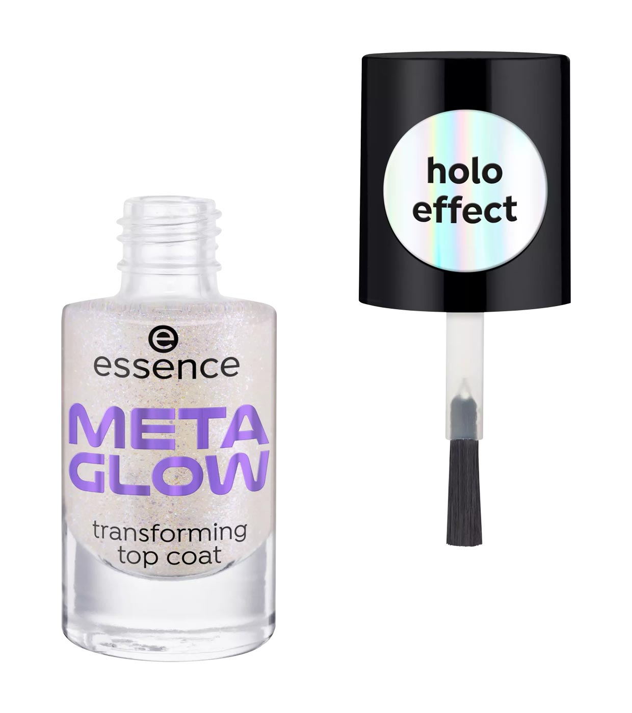 Você está procurando um top coat que transforme suas unhas em uma obra de arte espetacular? Então o essence Meta Glow Transforming Top Coat é seu cúmplice!