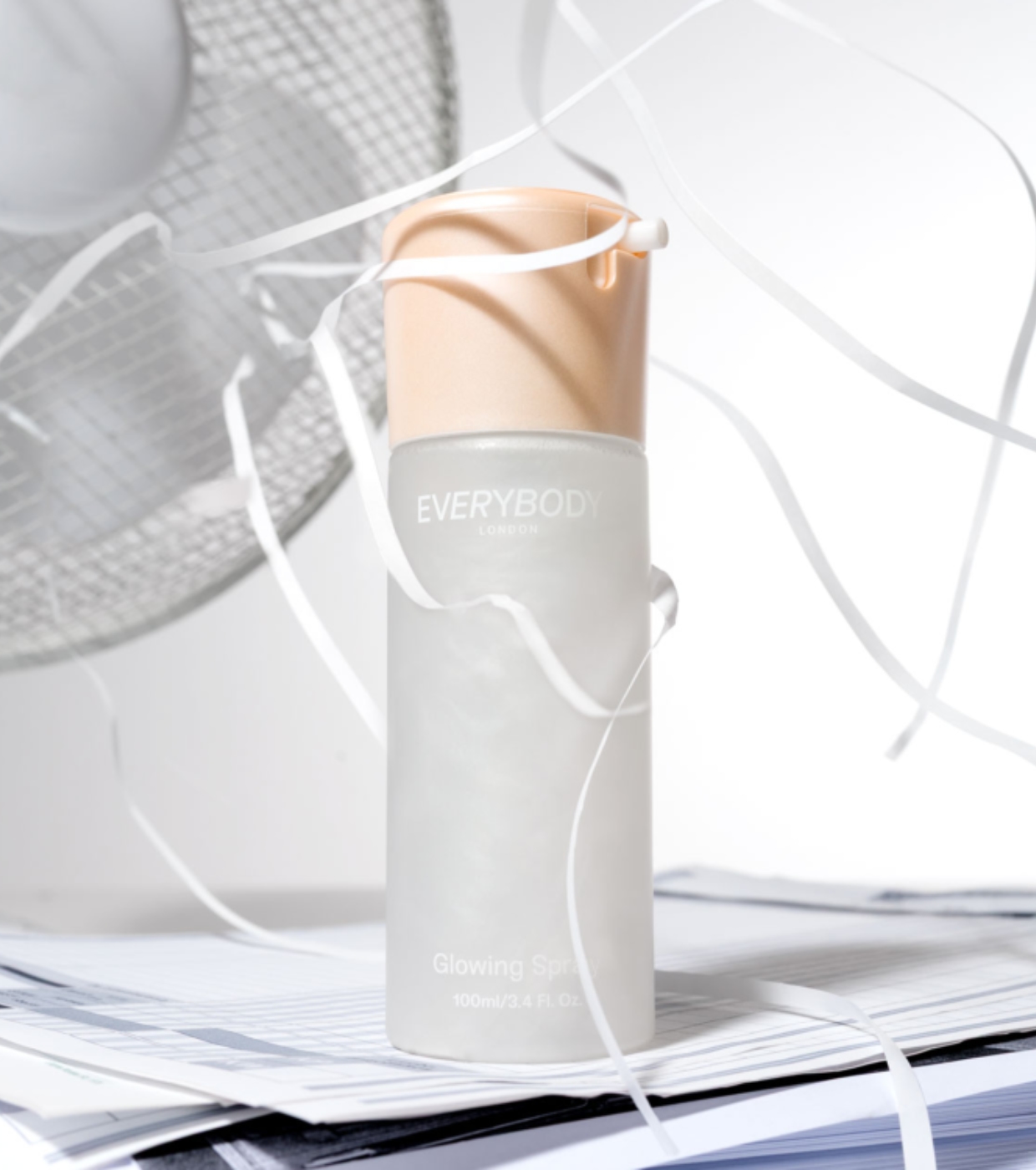 Glowing Spray da Everybody London é uma névoa iluminadora multifuncional que proporciona à pele hidratação intensa, frescor e um brilho natural instantaneamente.