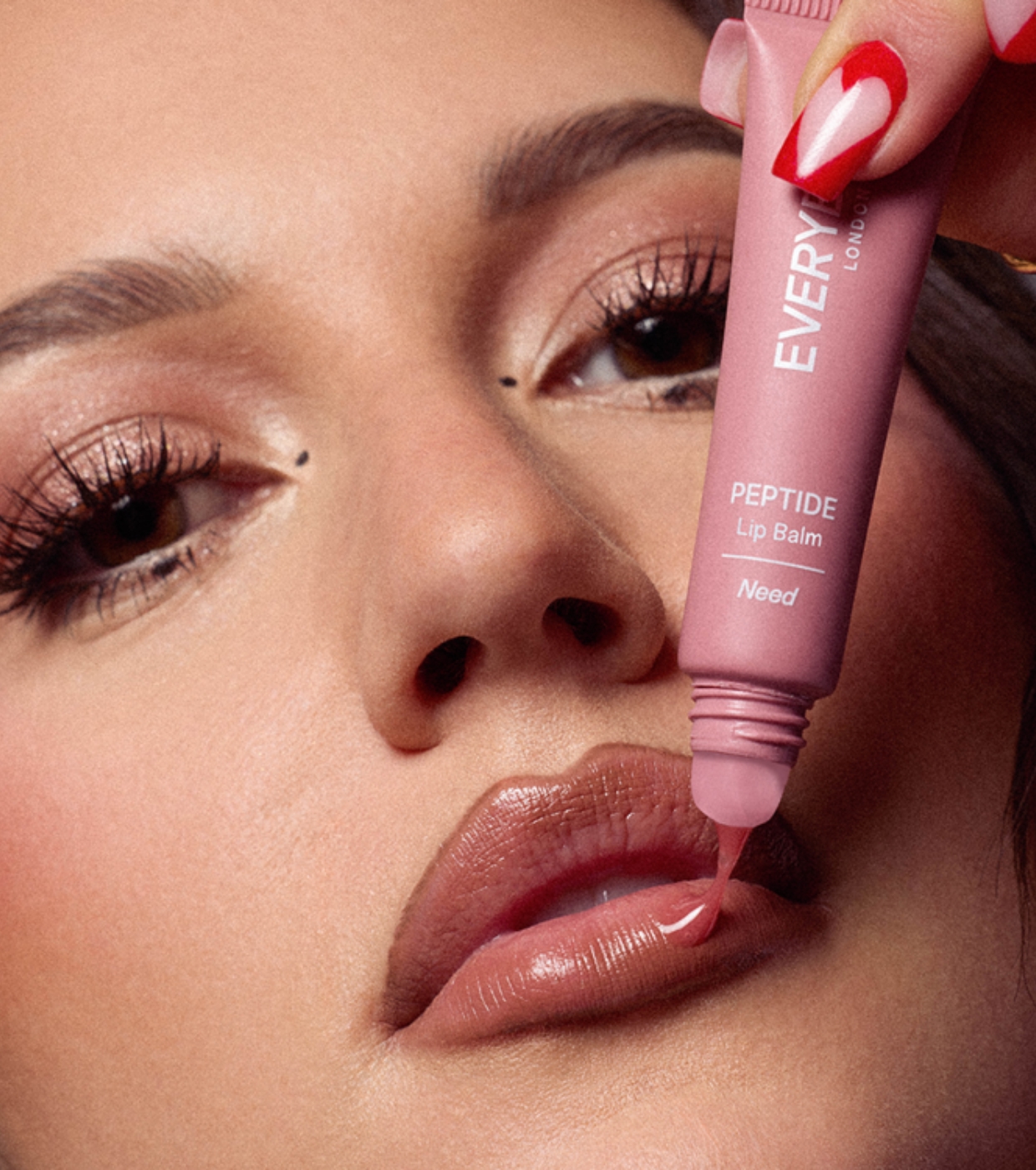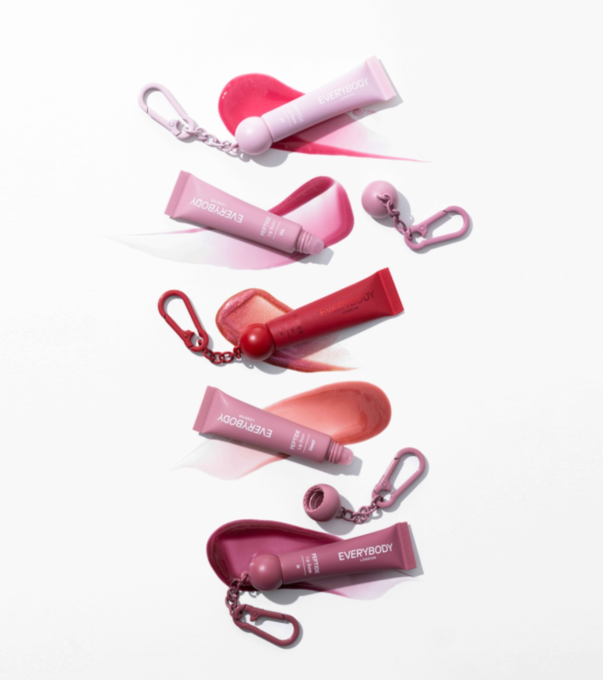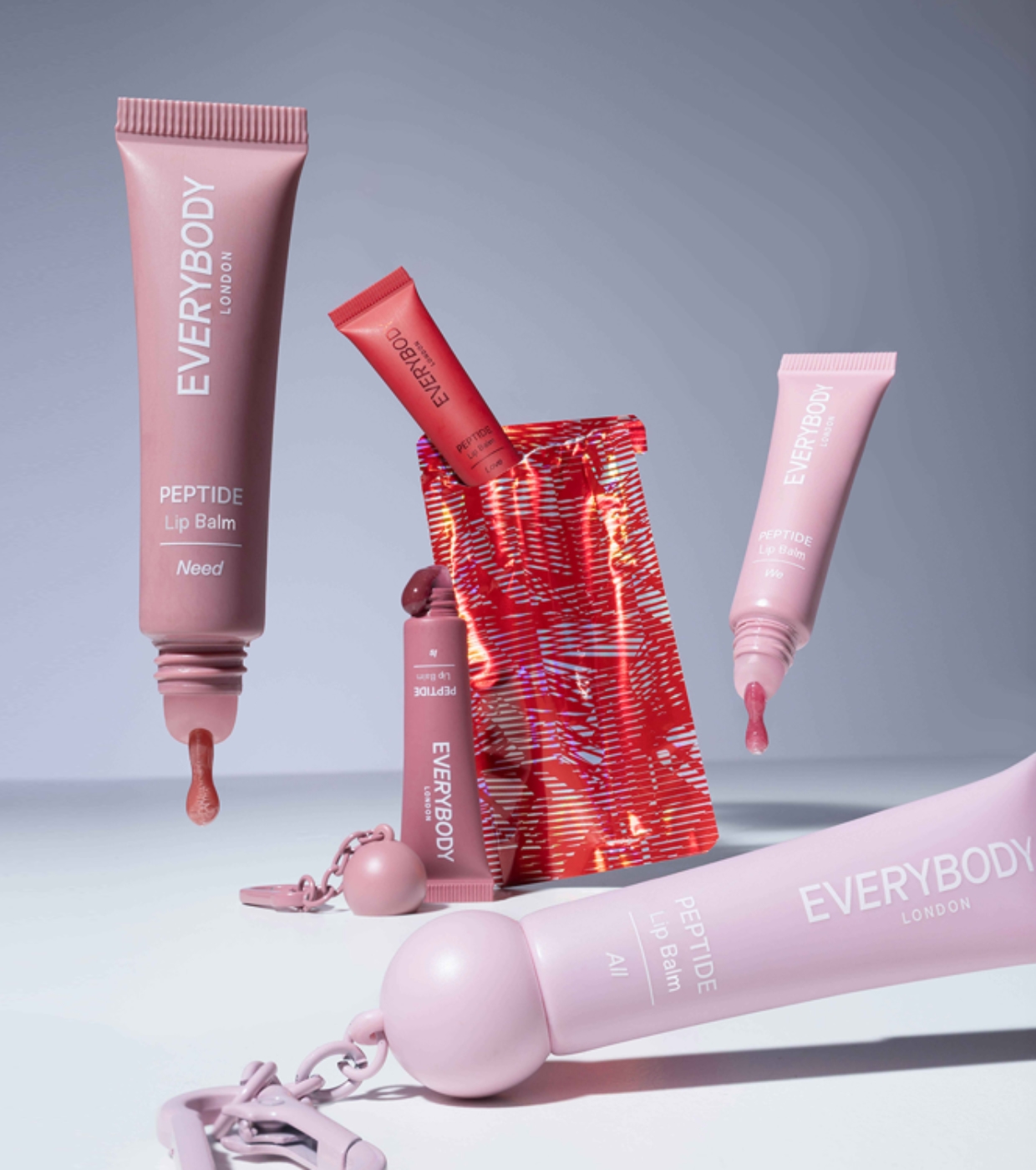 Cada caixa contém uma das cinco novas tonalidades de bálsamo labial com peptídeos, apresentada em uma embalagem elegante e com design moderno.