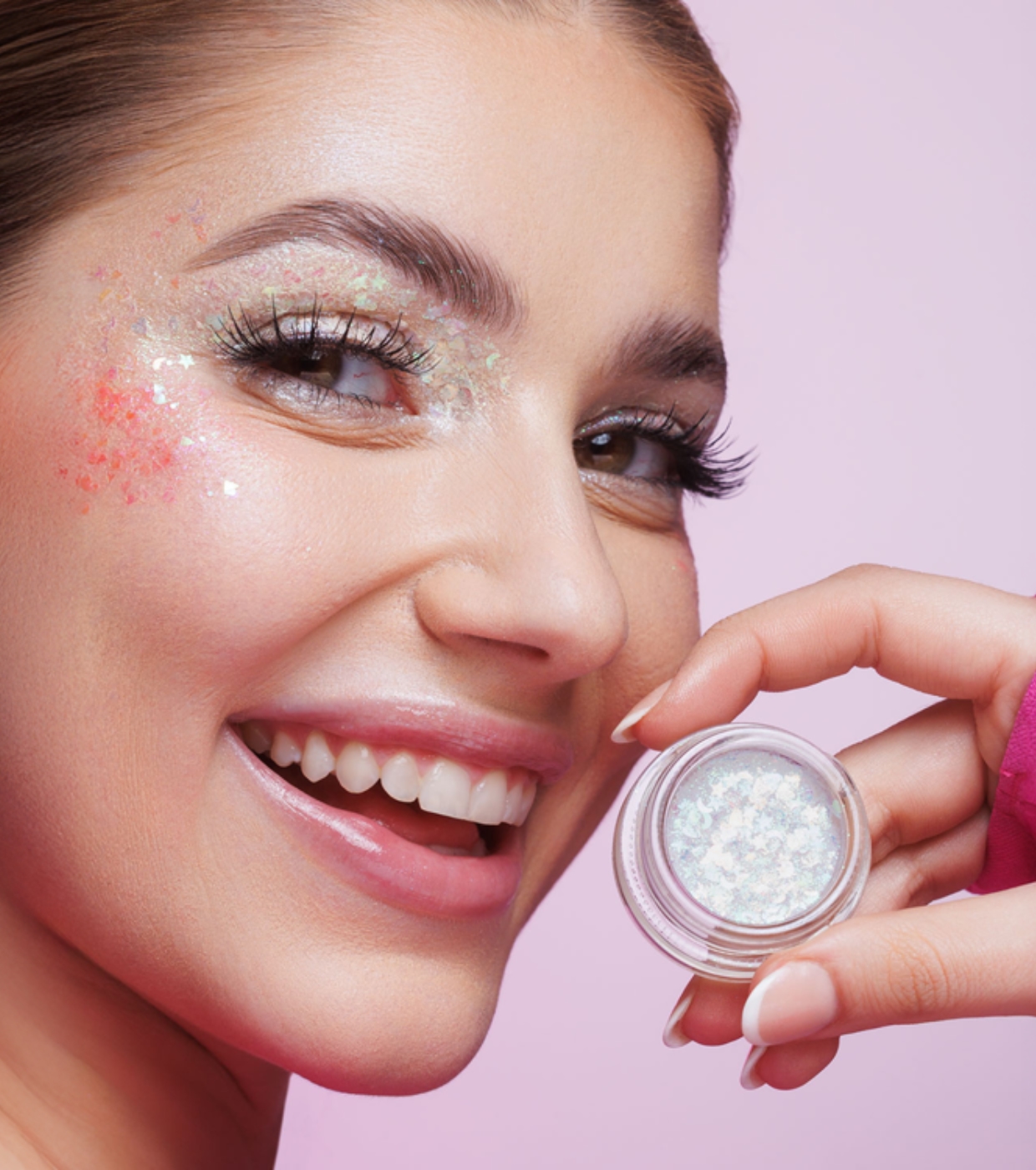 Este glitter exclusivo contém partículas em formato de corações, luas e estrelas, que refletem a luz em tons prateados intensos e criam um efeito espetacular na pele.