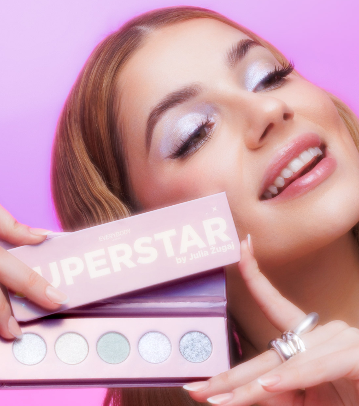 Destaque-se com um visual luminoso e vibrante graças à paleta de sombras Superstar da Everybody London , criada em colaboração com a influenciadora Julia Żugaj.