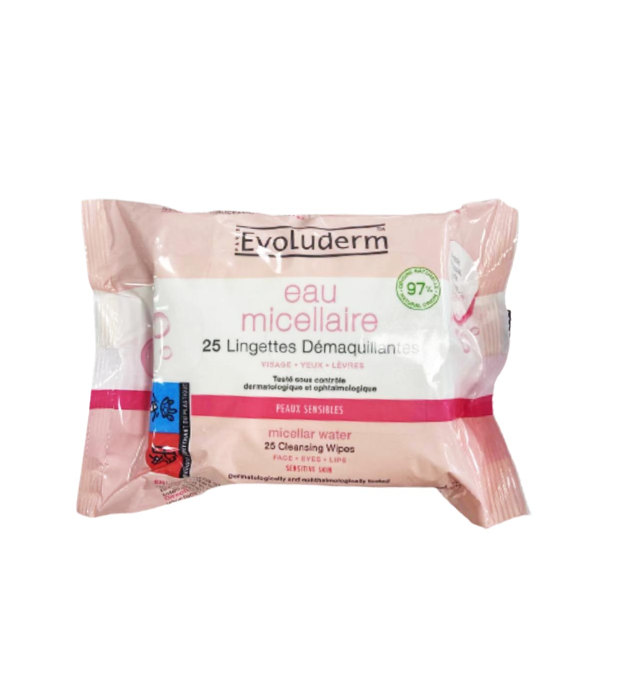 Toalhetes desmaquilhantes com água micelar para peles sensíveis 25 unidades de Evoluderm.