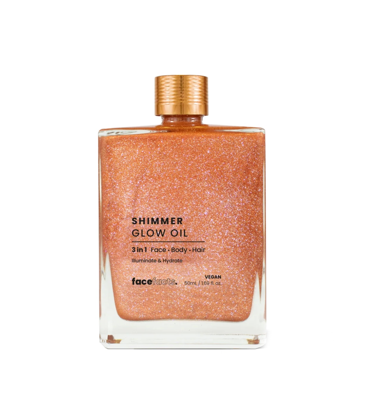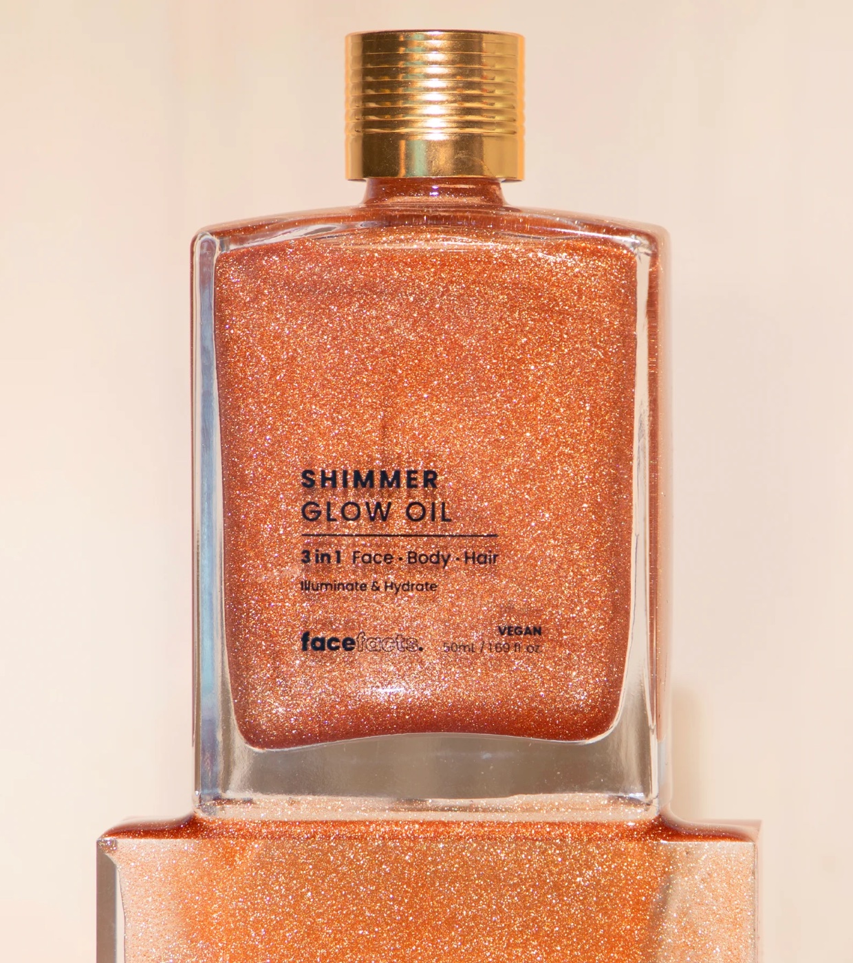Aumente a sua luminosidade e brilho com este óleo corporal com Shimmer da Face Facts.