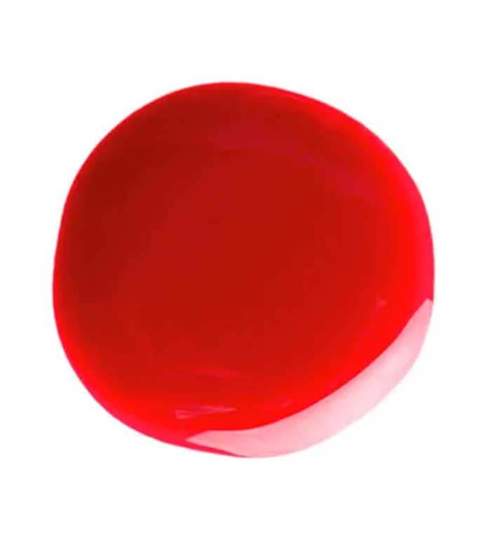 Esta tonalidade vermelha intensa tem uma textura leve e fluida que não deixa uma sensação pesada na pele.