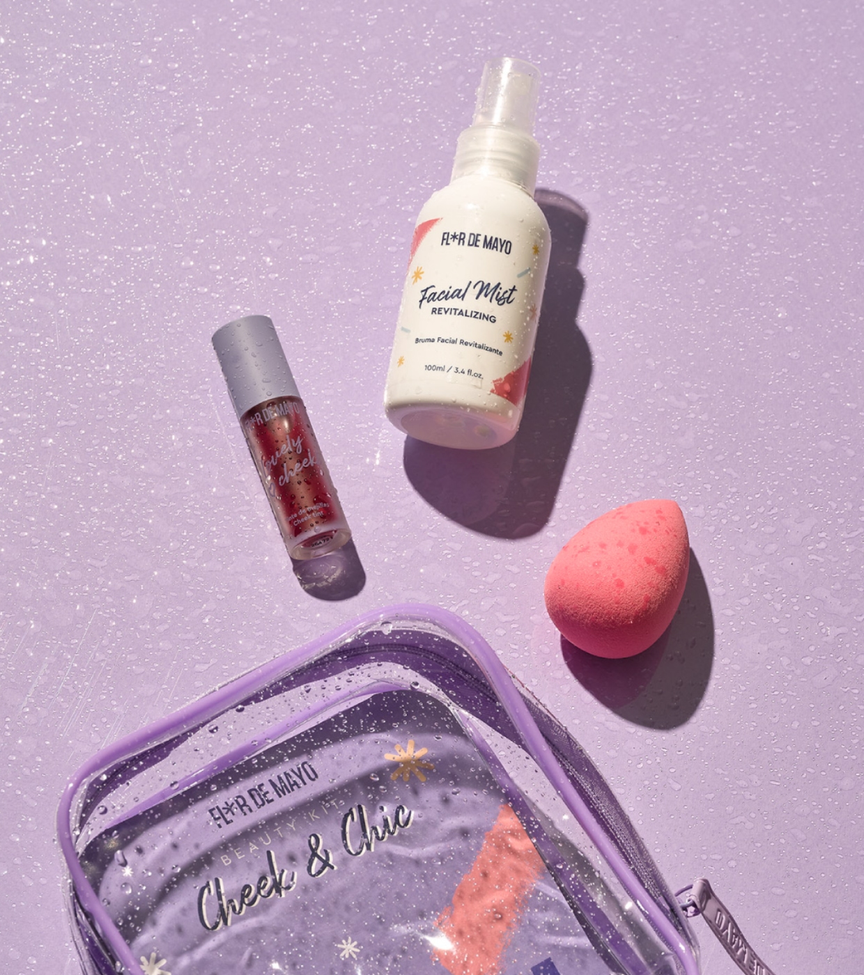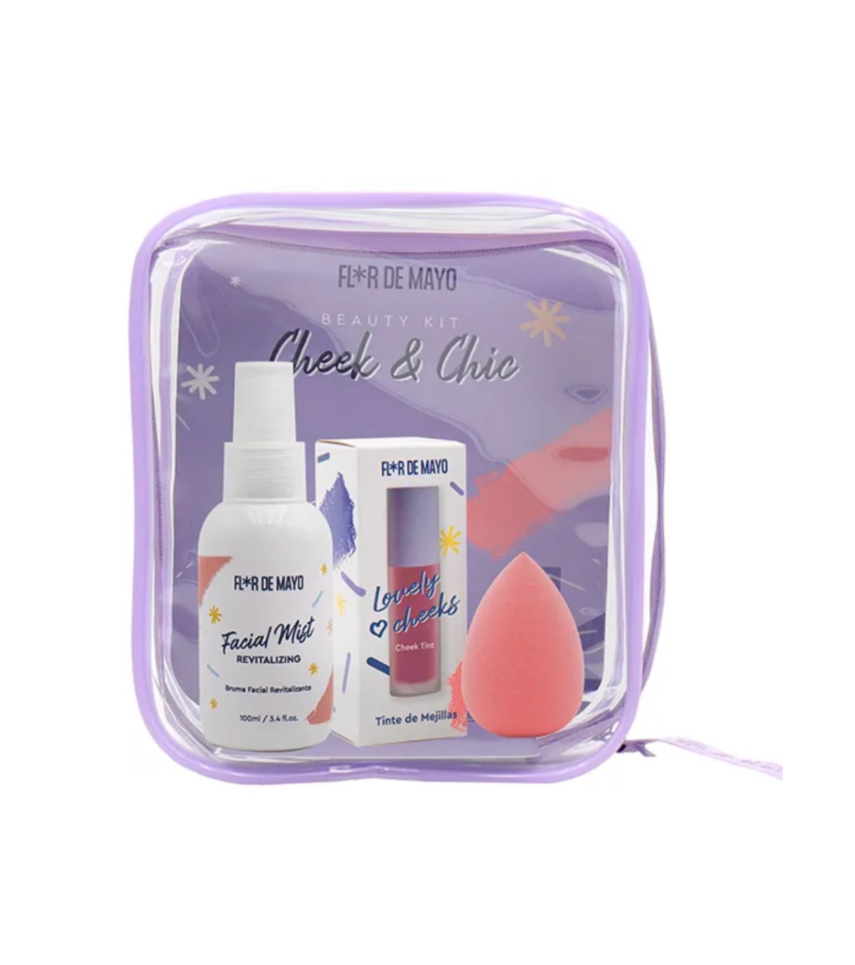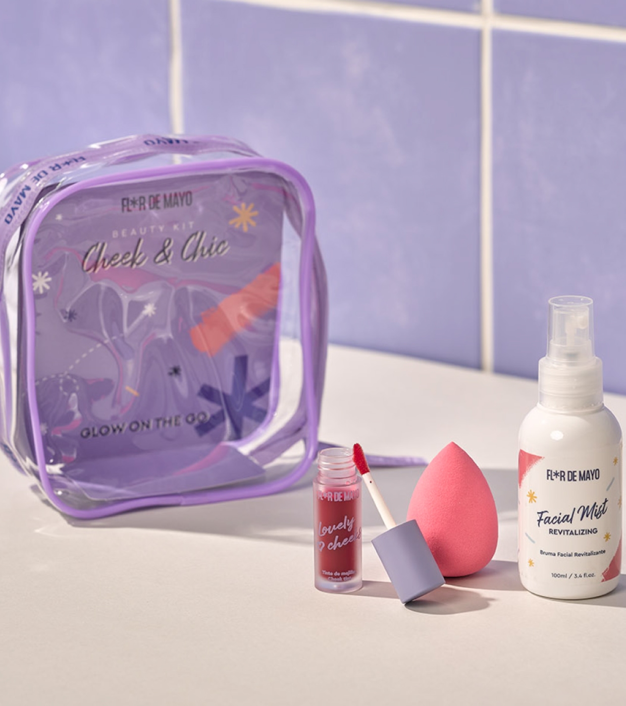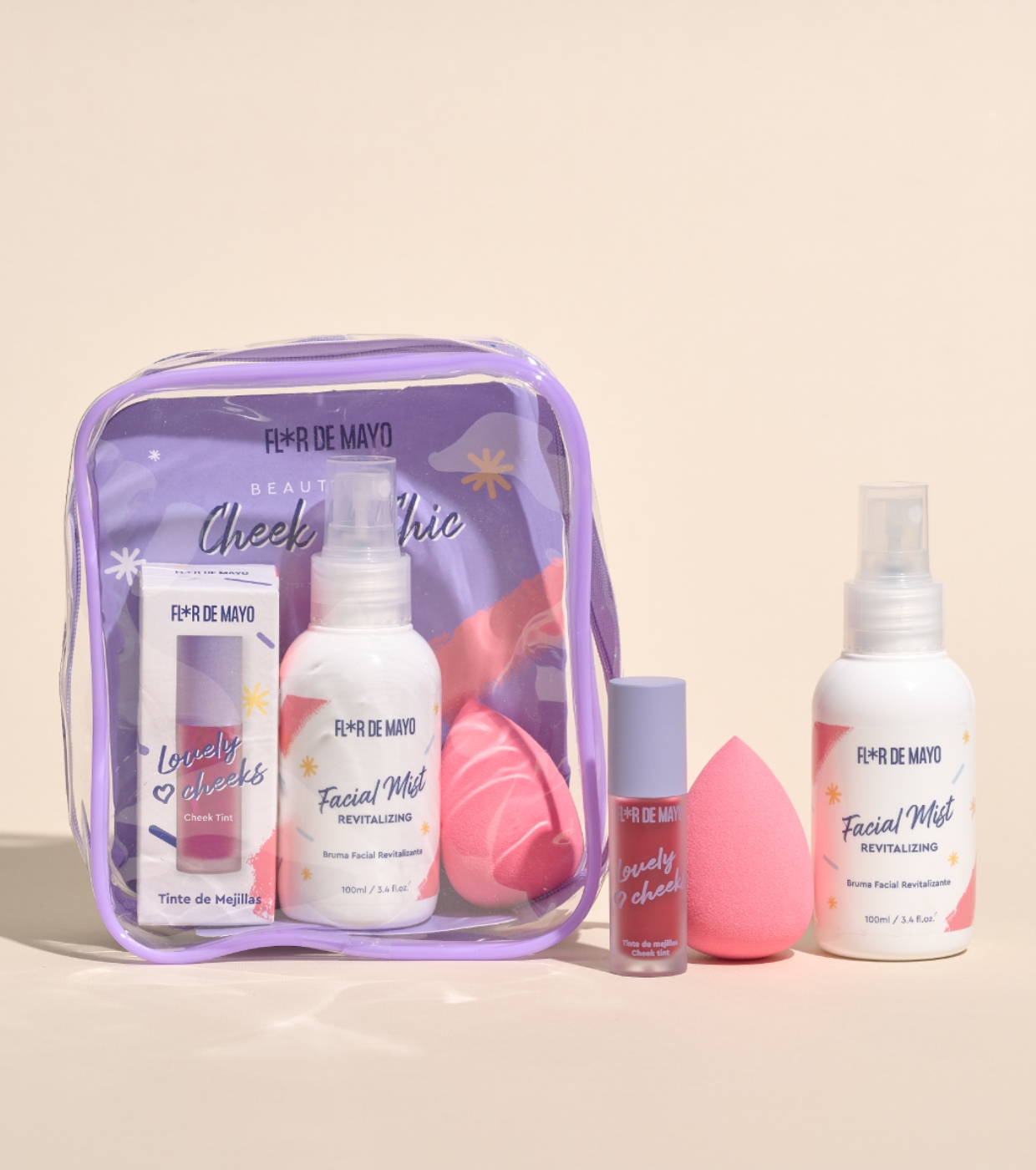 Dois itens essenciais para o cuidado facial se reúnem em um prático formato de viagem, o conjunto de rosto radiante Cheek & Chic da Flor de Mayo .