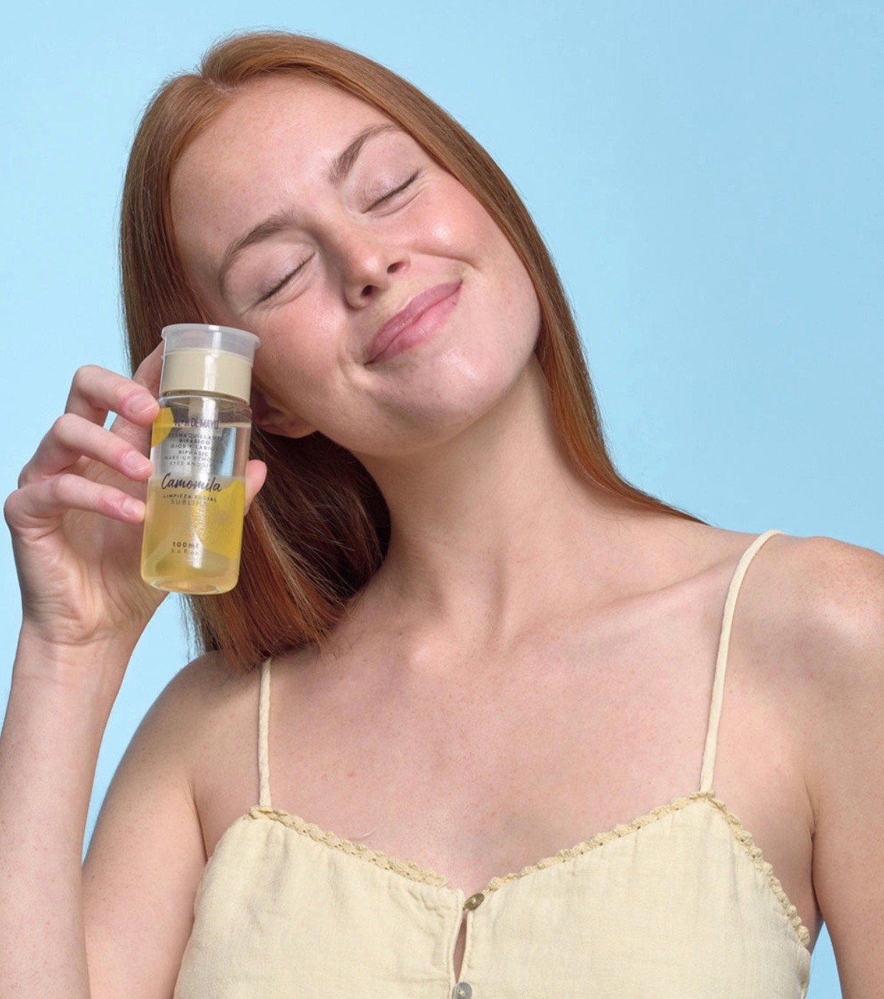 - Extrato de camomila, que suaviza e acalma até as peles mais sensíveis.