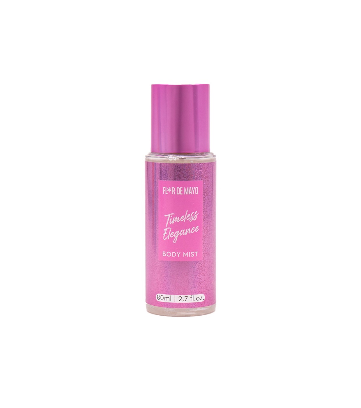 A névoa corporal Timeless Elegance da Flor de Mayo é uma névoa corporal fresca que hidrata e perfuma, criando um efeito hidratante e luminoso na pele.