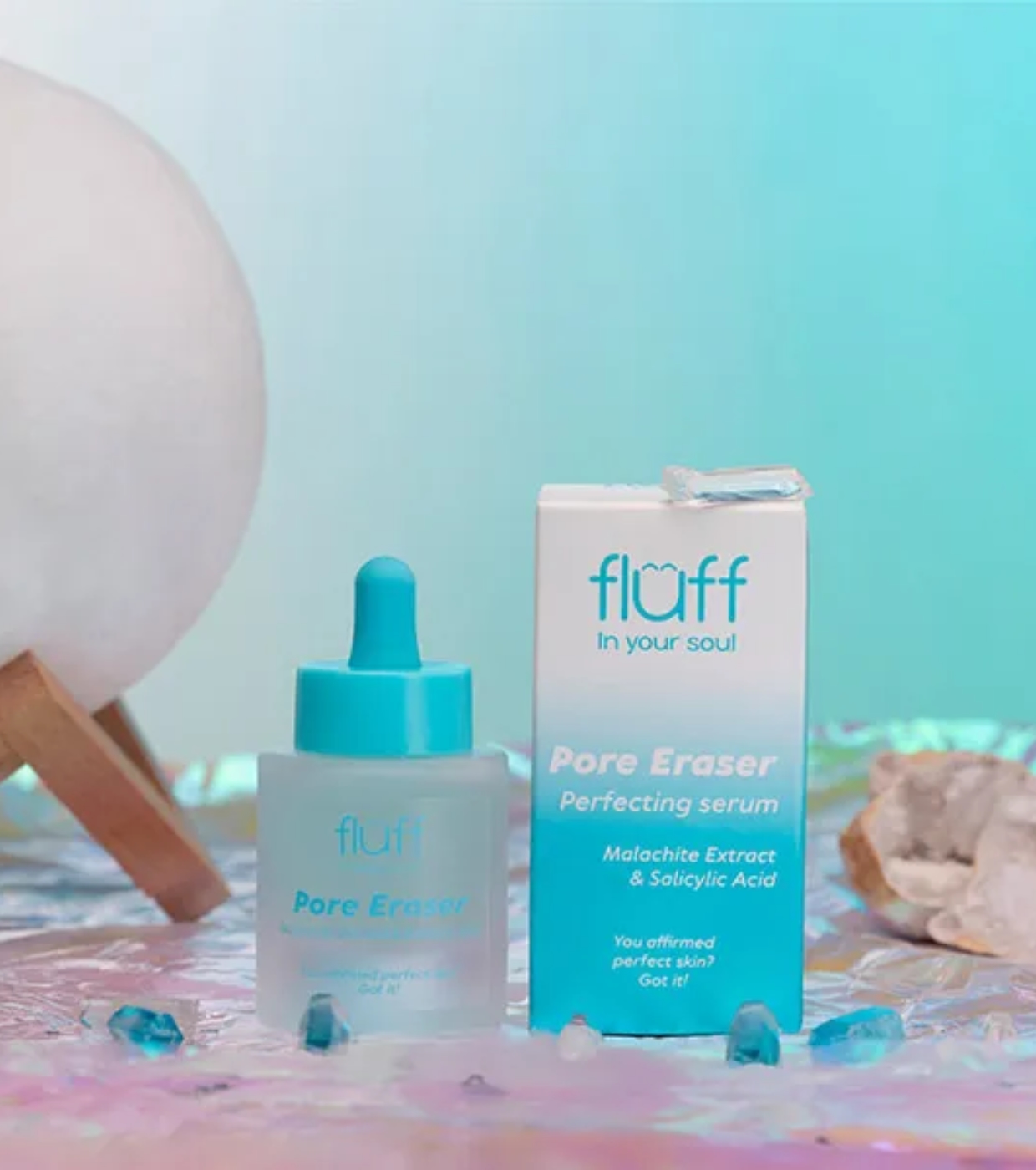 O Sérum Facial Minimizador de Poros com Ácido Salicílico Pore Eraser da Fluff é a solução perfeita para uma pele sem manchas.