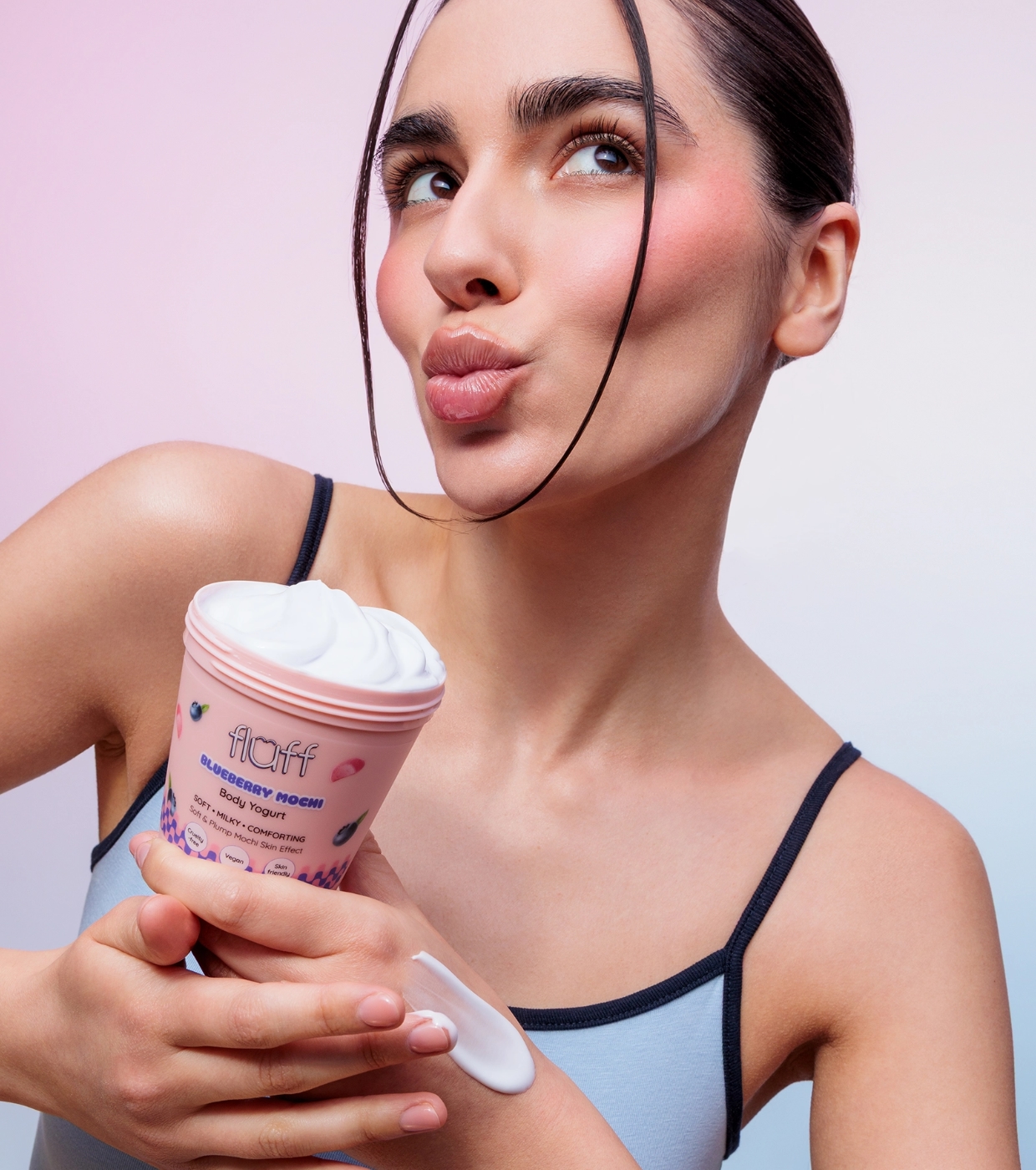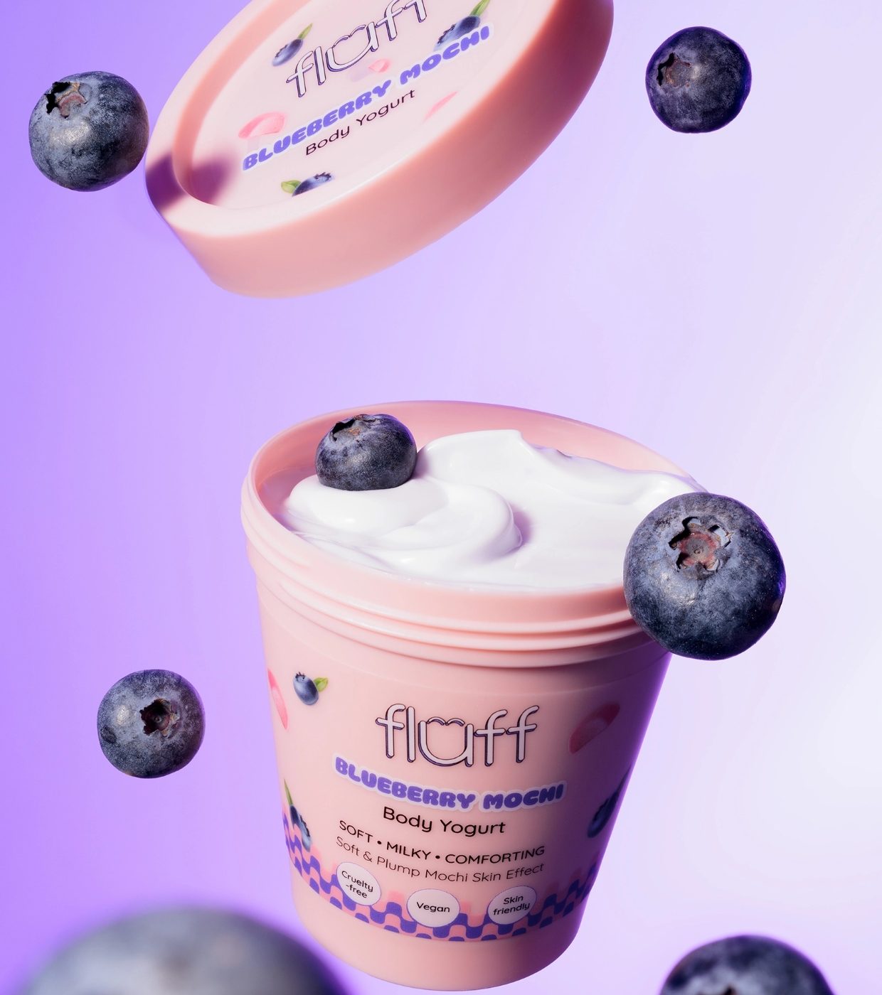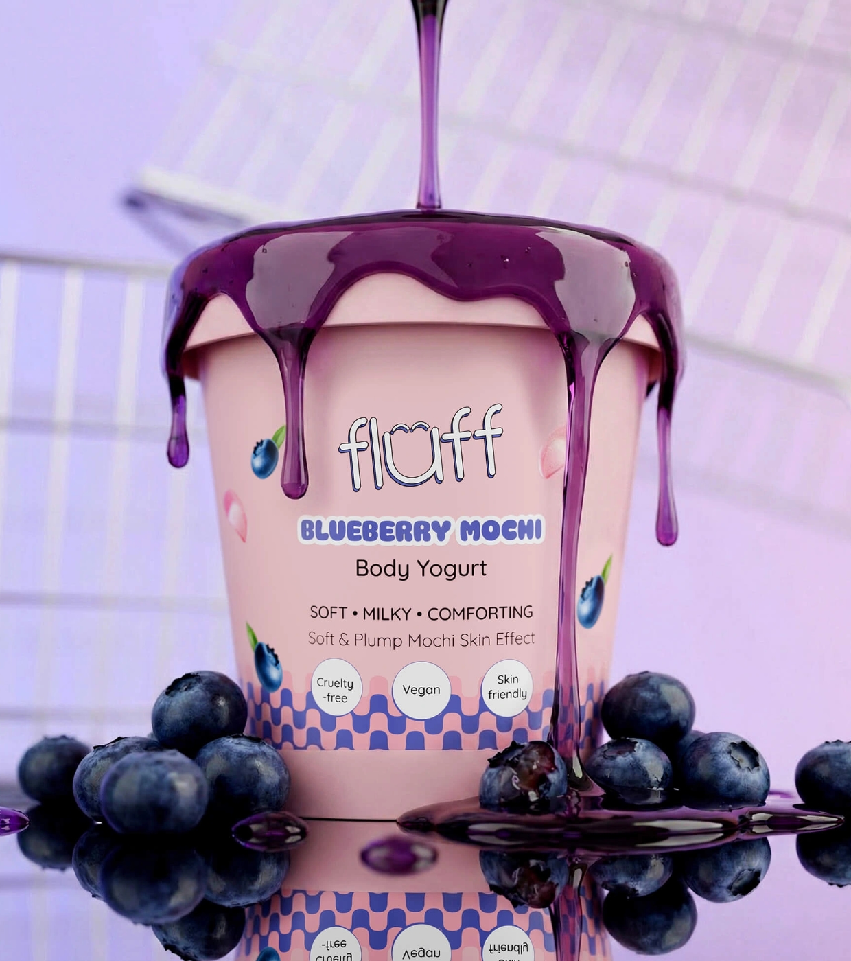Transforme sua rotina de cuidados com o corpo em um momento de prazer com o iogurte corporal Blueberry Mochi da Fluff , o iogurte corporal que hidrata, suaviza e envolve sua pele em um delicioso aroma doce.