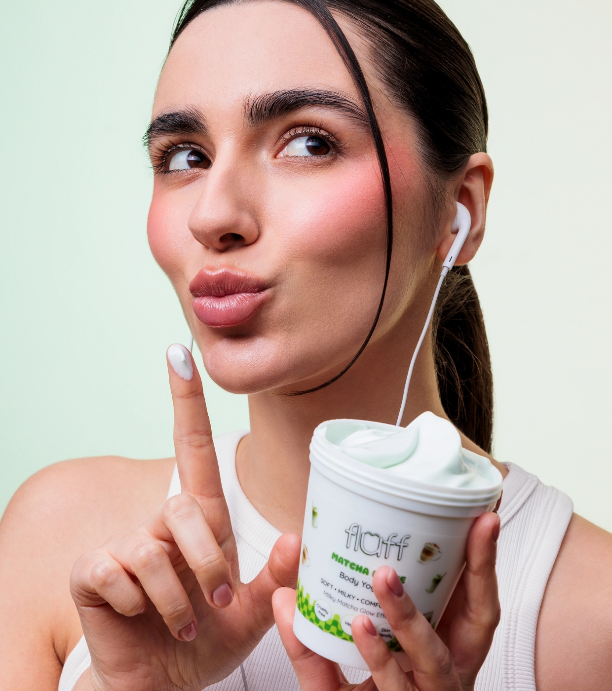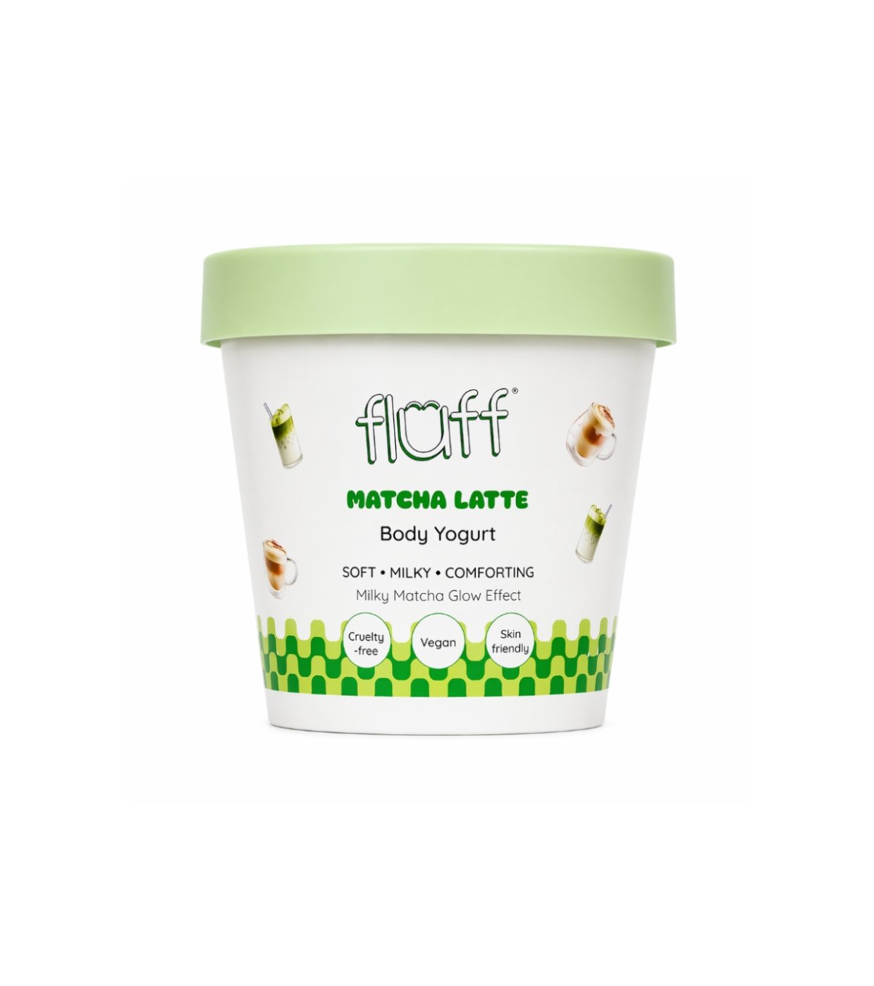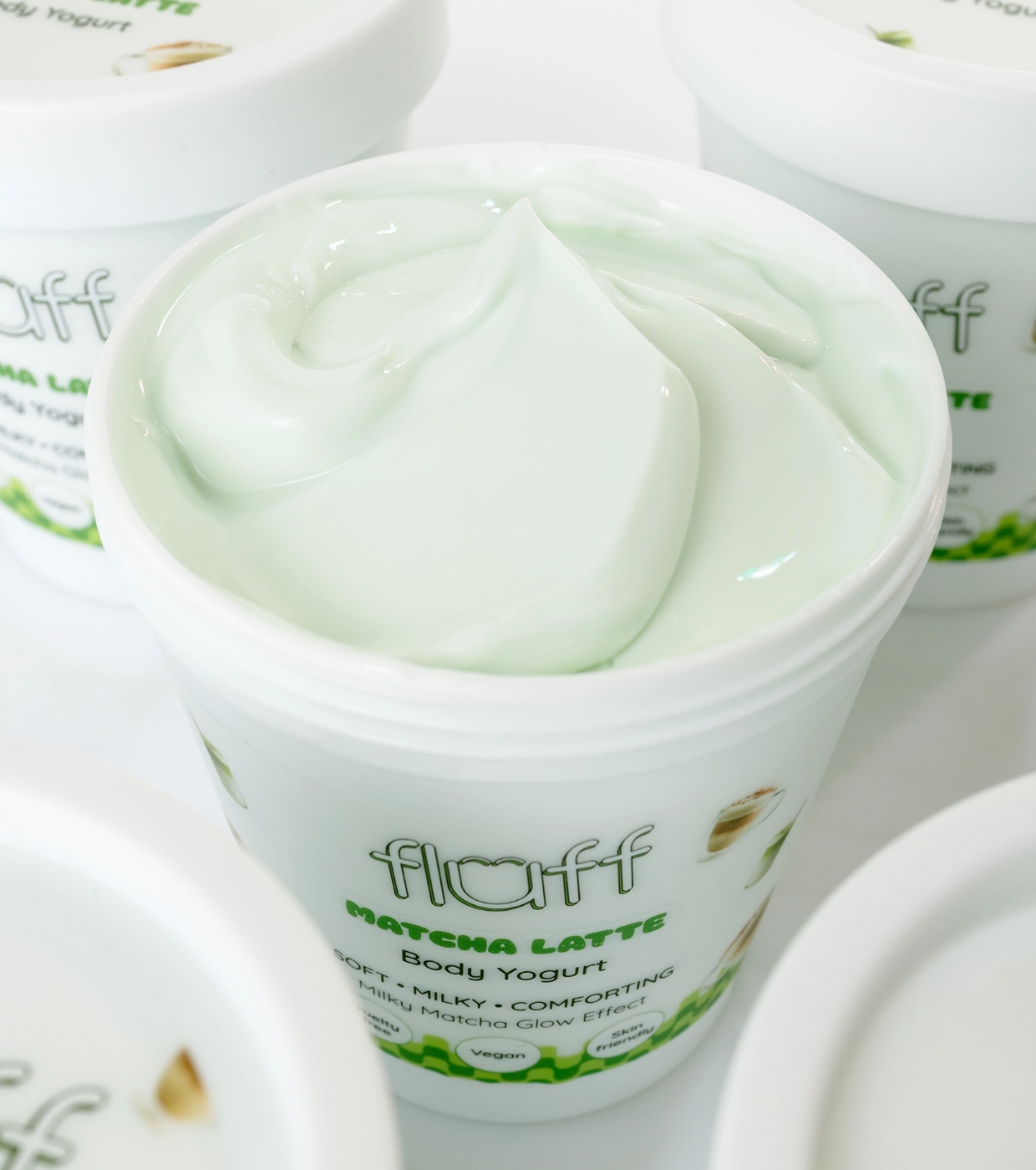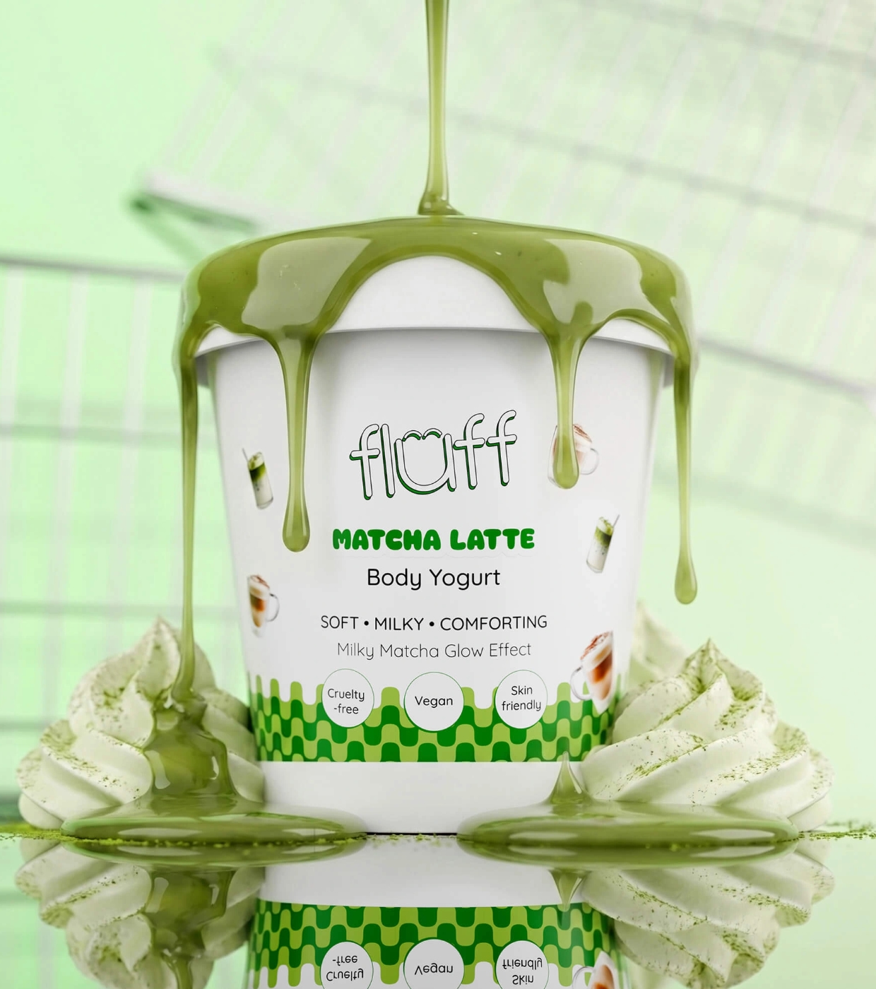 Presenteie-se com um momento de calma e cuidado com o iogurte corporal Matcha Latte da Fluff , um iogurte que hidrata, suaviza e conforta a pele com uma textura leve e um aroma que lembra um spa.