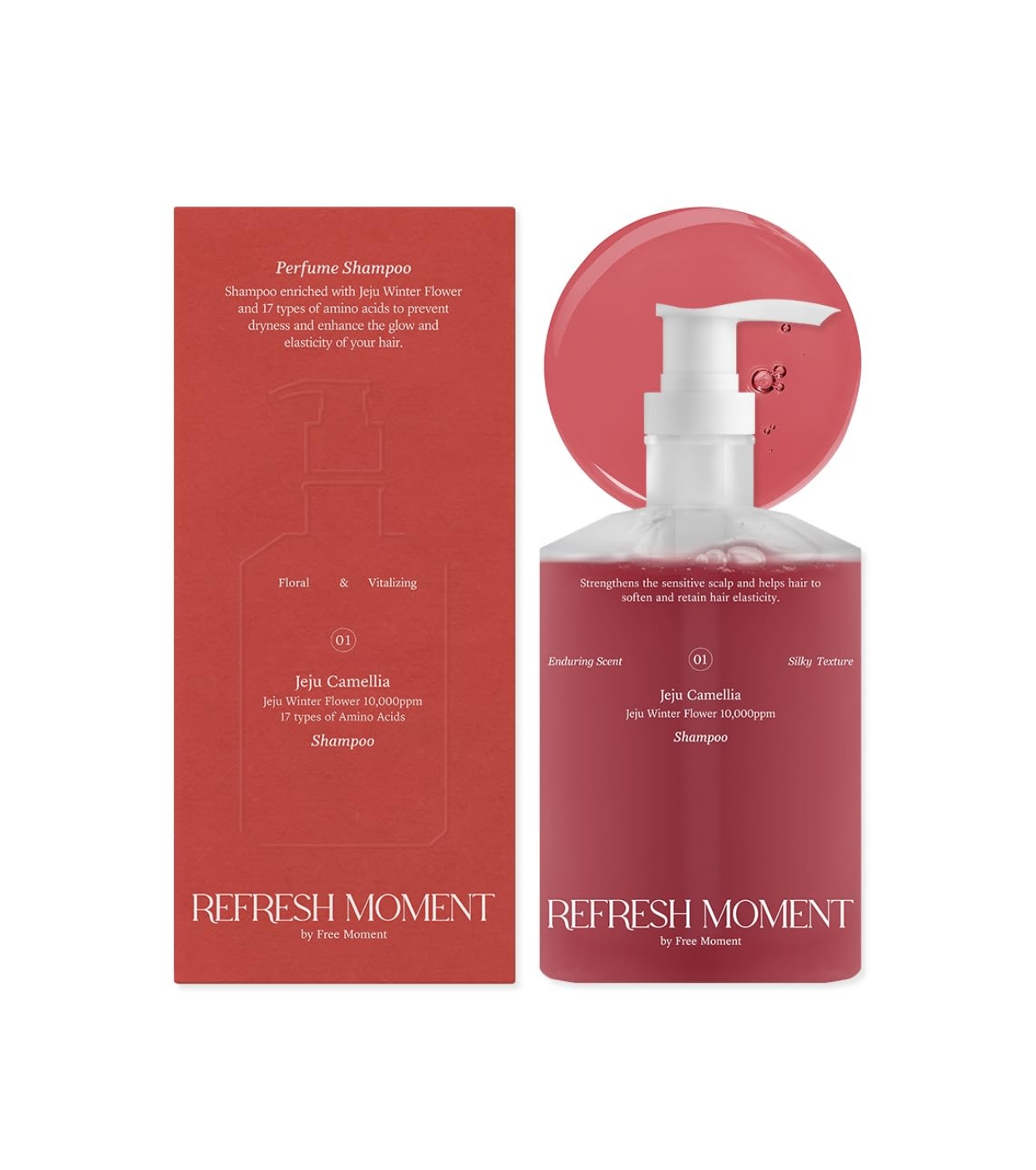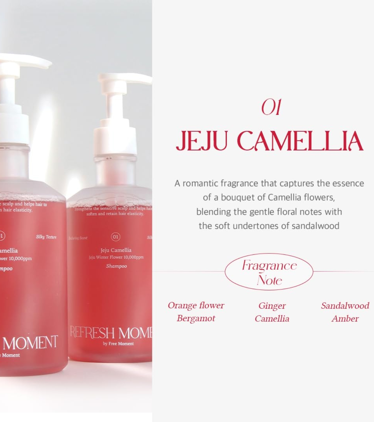 Descubra o poder restaurador do Shampoo de Camélia Jeju Free Moment , formulado com extrato de flor de camélia Jeju e 17 aminoácidos essenciais.