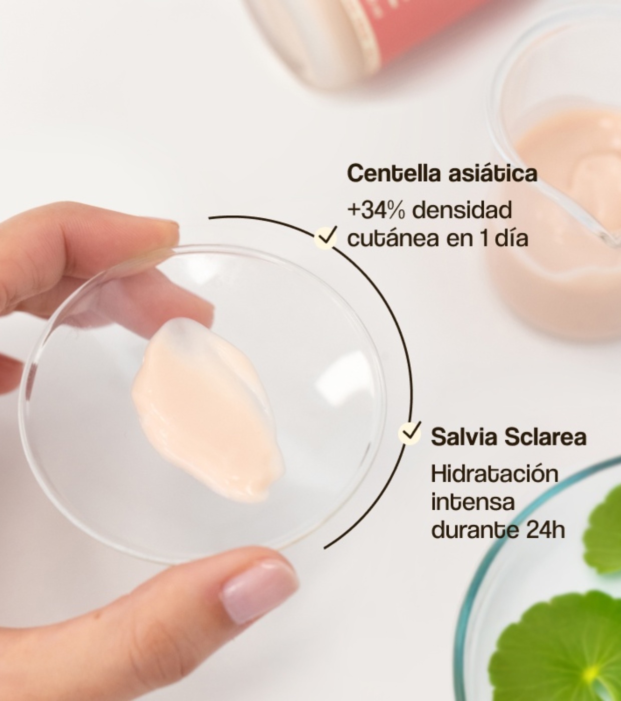 Com uma textura leve e de rápida absorção, aumenta a hidratação da pele em 115%, reduzindo a sensibilidade, a inflamação, a vermelhidão e o ressecamento graças aos seus poderosos ativos naturais: agastache mexicano, concentrado de planta xérica, ácido hialurônico vegano e óleo de amêndoas.