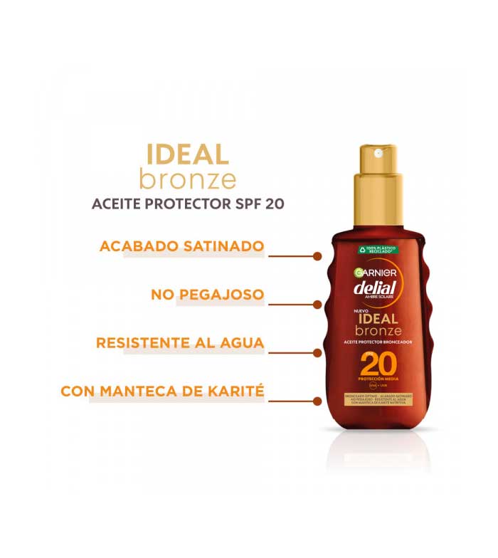 Bronzeie e proteja a sua pele ao mesmo tempo com este óleo bronzeador protetor Ideal Bronze com SPF20 da Garnier Delial .