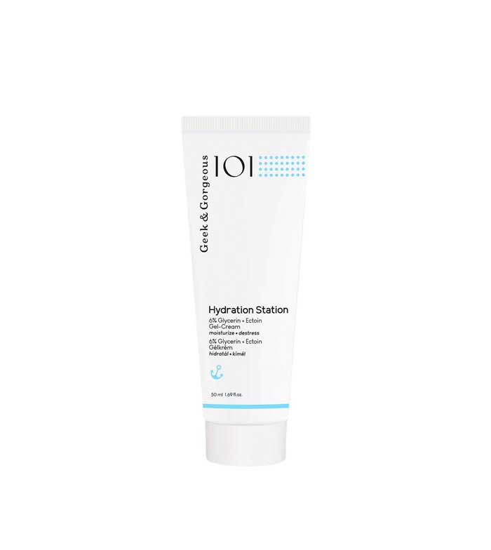 Creme-Gel Hidratante 6% Glicerina + Ectoína Hydration Station da Geek & Gorgeous é um hidratante leve e refrescante com textura em gel que vai além do básico, pois além de hidratar, protege e acalma a pele.