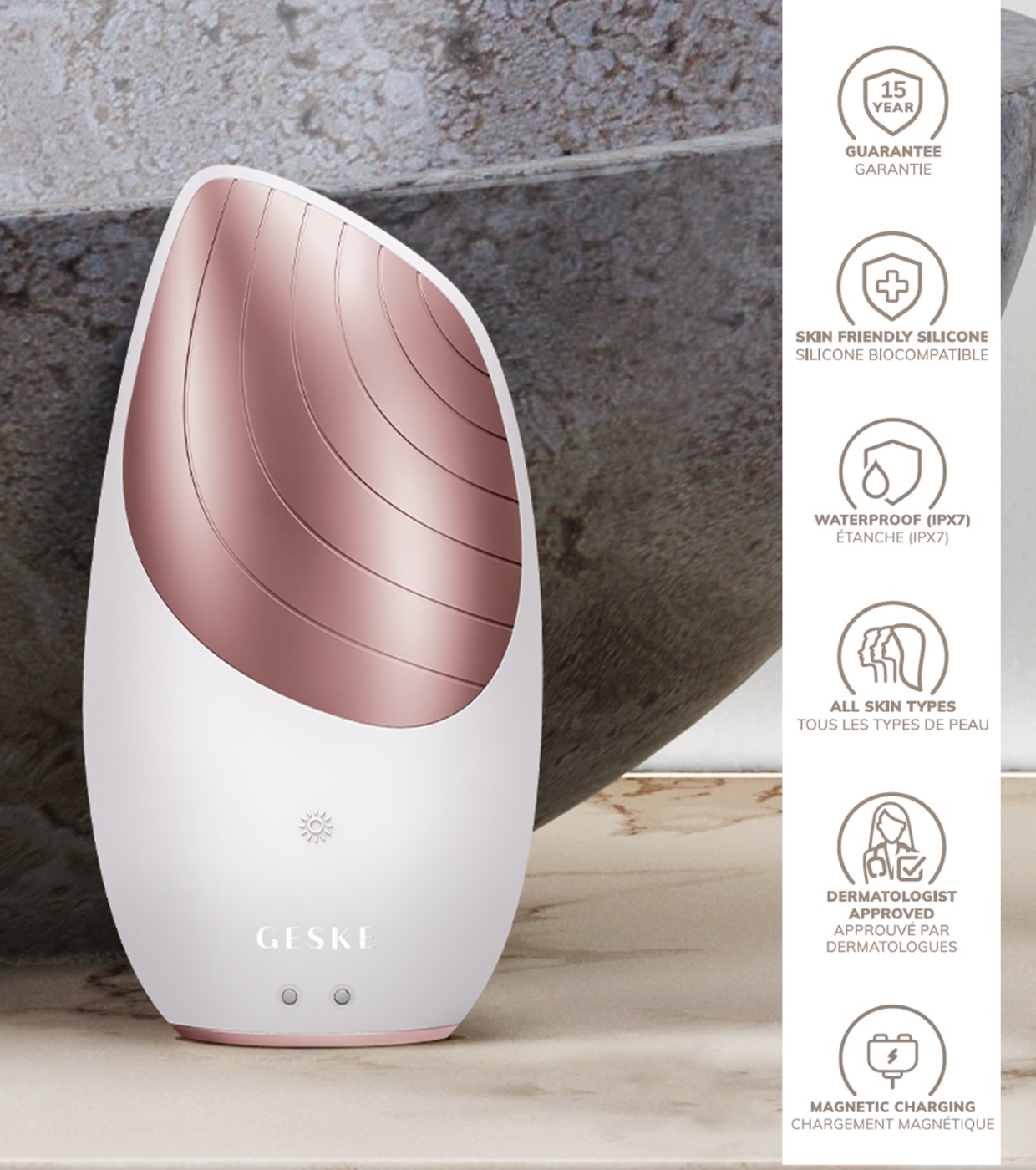 • Tecnologia de massagem com brilho juvenil