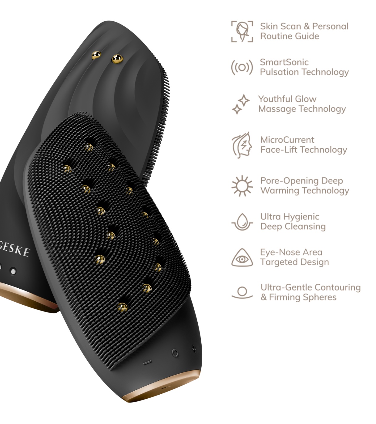 Aproveite a tecnologia SmartSonic com mais de 8.000 batimentos por minuto, massagem MicroCurrent e funções de lifting facial para uma pele firme e jovem.
