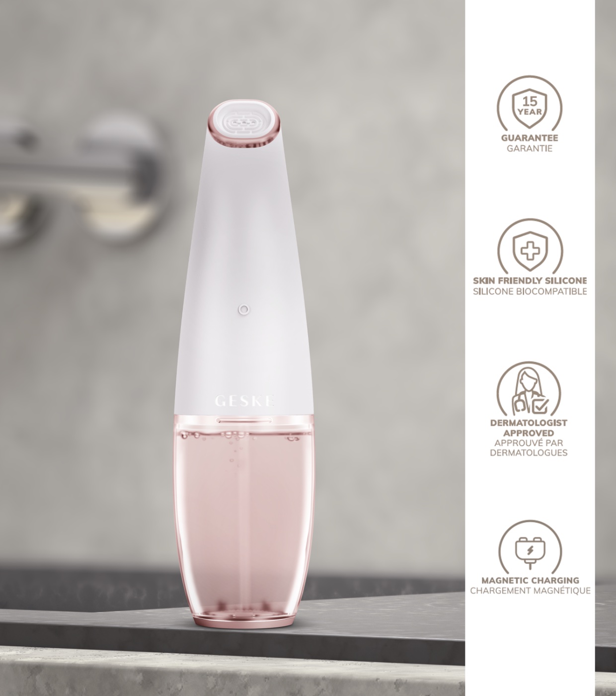 Renove sua pele com uma combinação de tecnologias avançadas que trabalham sinergicamente para proporcionar limpeza, hidratação e frescor em cada sessão com este Aqua-Stream Face Cleanser 8 in 1 da GESKE .