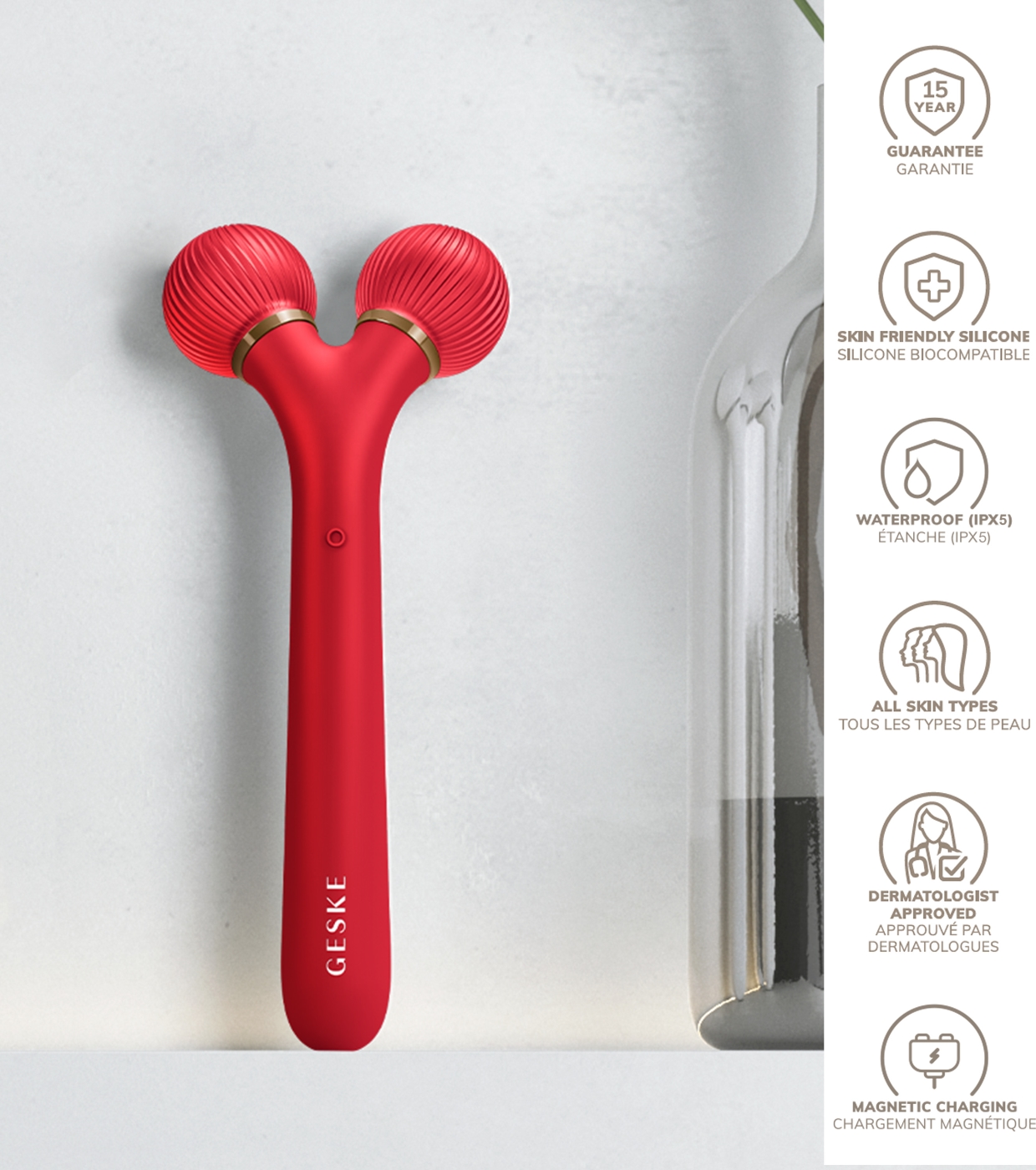 Mergulhe no futuro dos cuidados com a pele com o Sonic Facial Roller SmartAppGuided™ | 4 em 1 , premiado em primeiro lugar em inovação em beleza.