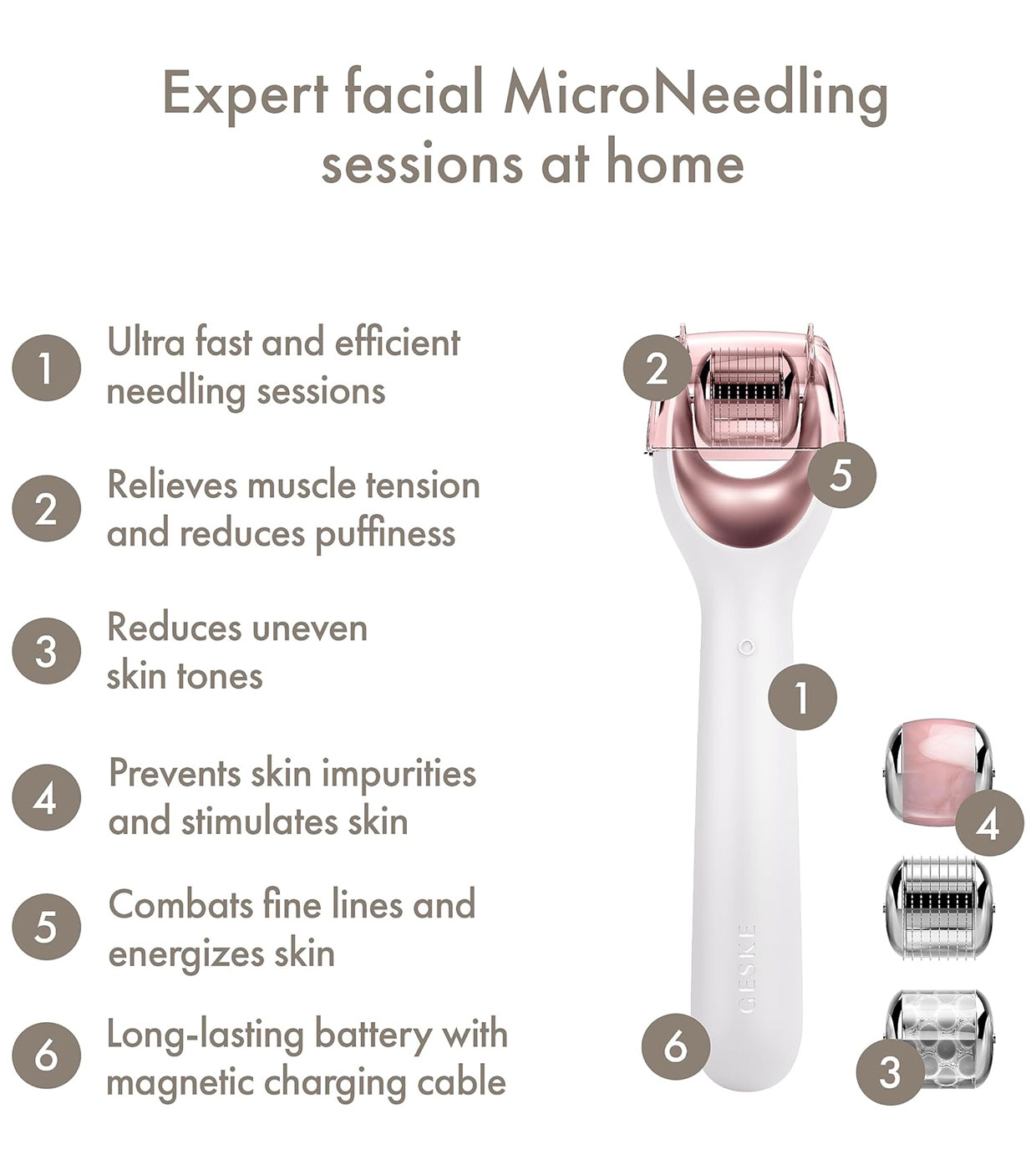 Obtenha resultados de spa em casa sem os custos de um tratamento na clínica. Nosso MicroNeedle Face & Body Roller | 9 em 1 possui três acessórios intercambiáveis: microagulhamento, resfriamento e quartzo rosa.