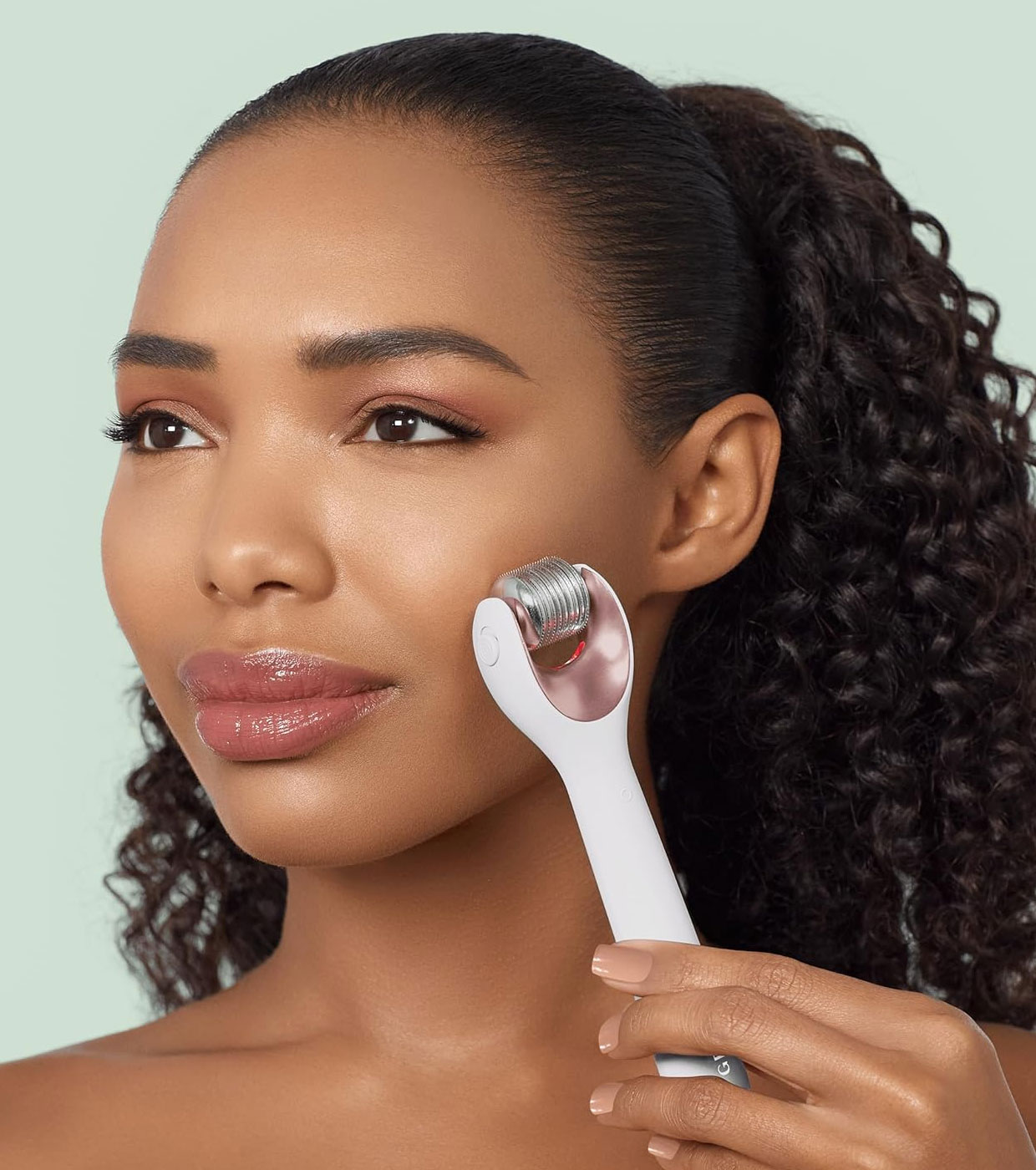 Quer um spa em casa em menos de um minuto? Use o SmartAppGuided™ MicroNeedle Face Roller | 9 em 1 na sua rotina diária.