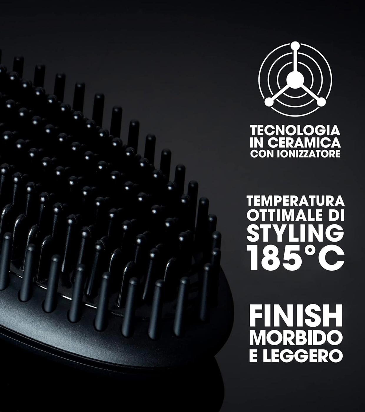 A combinação de cerdas curtas e longas de alta densidade permite pentear grandes mechas de cabelo, proporcionando um acabamento suave e cheio de movimento.