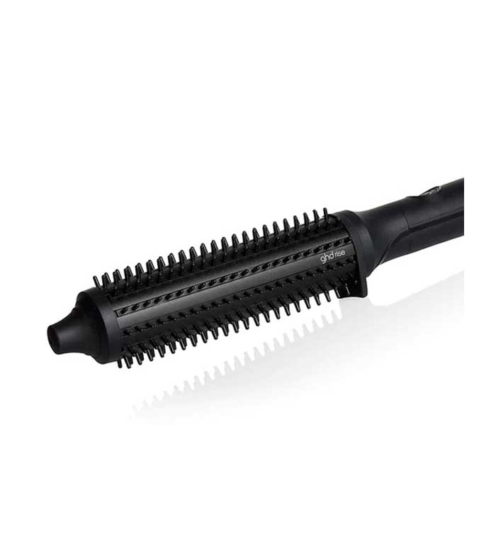 A escova modeladora ghd rise combina a inovadora tecnologia preditiva ultra-zone e cerdas de náilon de 5 mm, perfeita para alcançar as raízes e oferecer um volume invejável, bem como um penteado macio e sem puxões.